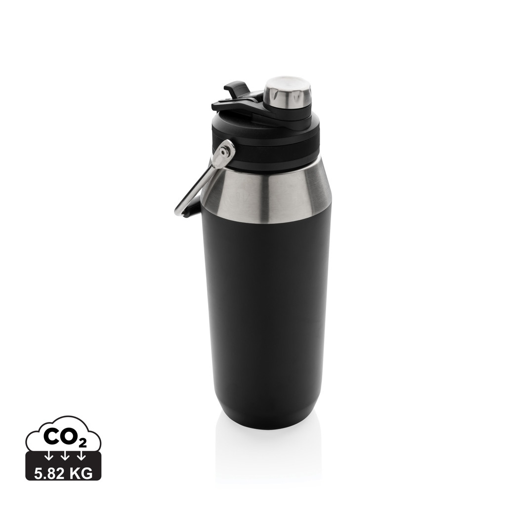 Бутылка вакуумная из нержавеющей стали с двойной крышкой 1 л, черный