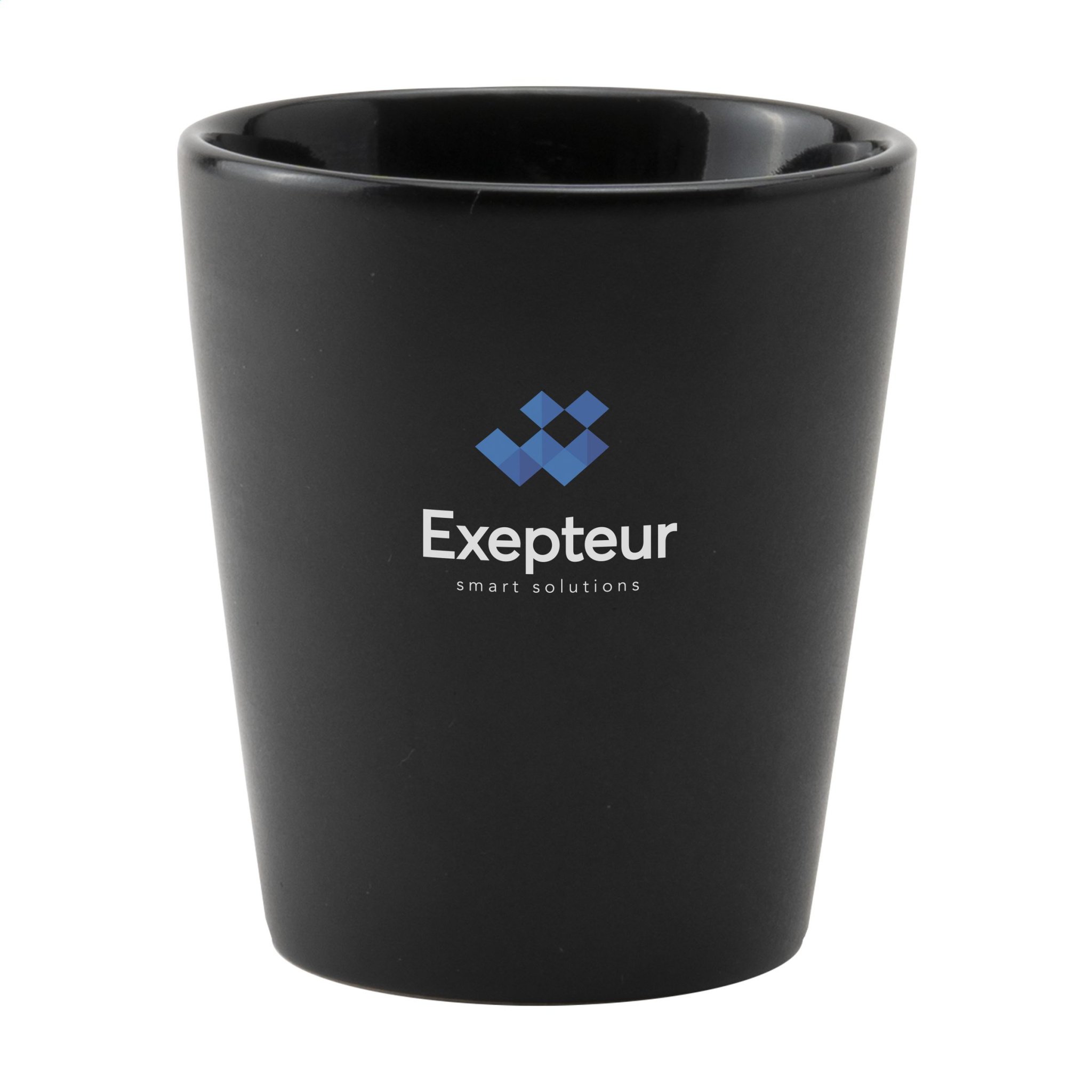 Модная кружка без ручки. Изготовлена из высококачественной керамики. С матовой внешней поверхностью и глянцевой внутренней. Подходит для всех кофемашин. Емкость 190 мл. Можно мыть в посудомоечной машине. Печать проверена и сертифицирована как пригодная для мытья в посудомоечной машине: EN 12875-2.