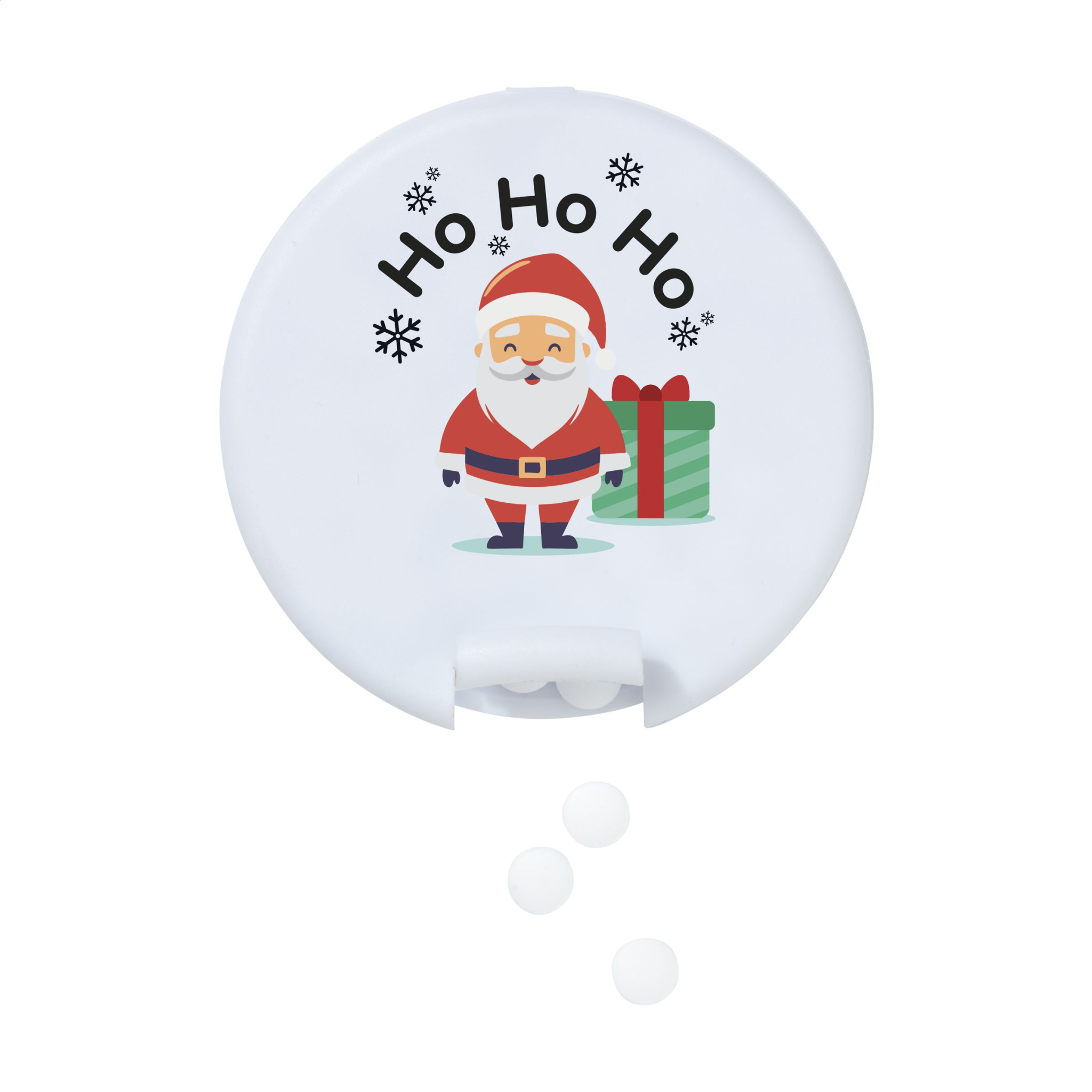 Круглый пластиковый диспенсер, наполненный примерно 12 г (55 штук) мятных леденцов без сахара. - Этот продукт напечатан со стандартным рождественским дизайном. Выбор из 6 различных дизайнов, как показано на изображениях. Невозможно настроить дизайн.
