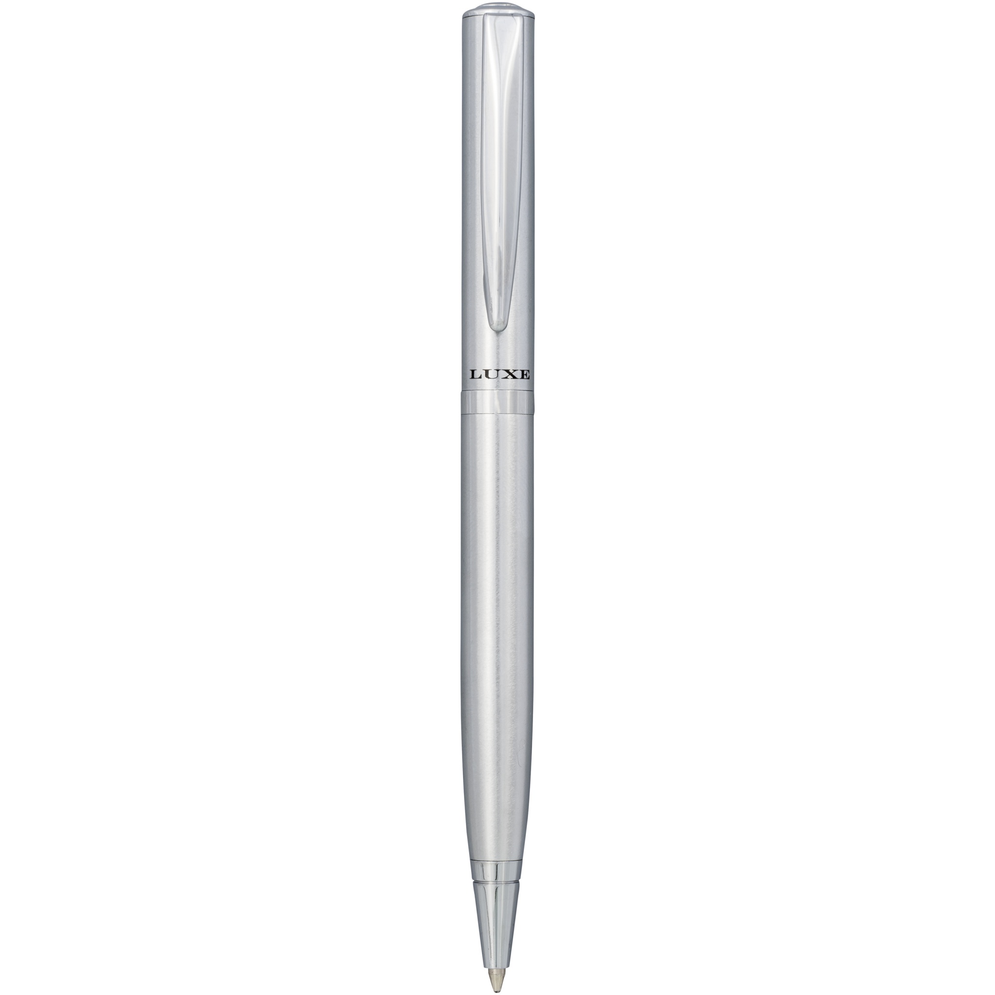 Эксклюзивная легкая шариковая ручка с золотой матовой шлифованной поверхностью и золотыми вставками и серебряной матовой шлифованной поверхностью и хромированными вставками. В набор входит запасной черный стержень премиум-класса. Предлагается в подарочной коробке LUXE (16,5 x 4,5 x 2,8 см).