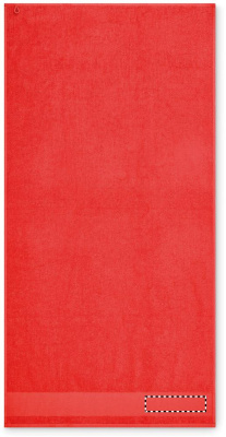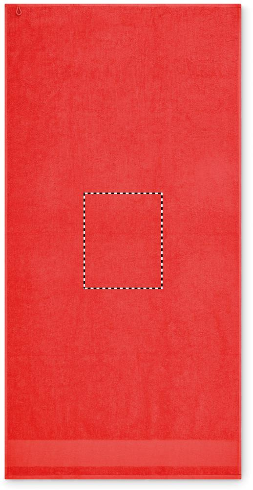 Bath towel made of 100% cotton, 380 gr/m² fabric with cotton hanger loop. Soft and absorbent design. Size 70 cm x 140 cm.