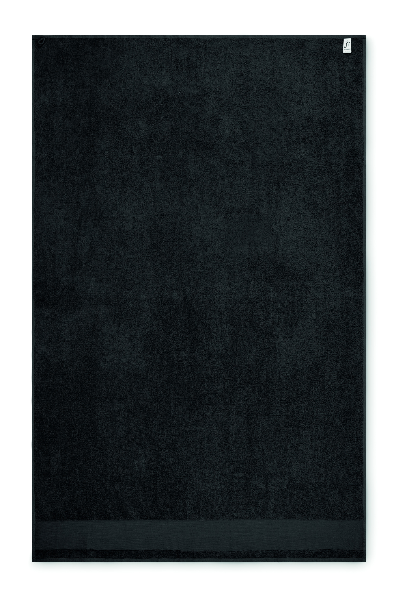 Bath towel made of 100% cotton, 380 gr/m² fabric with cotton hanger loop. Soft and absorbent design. Size 100 cm x 150 cm.