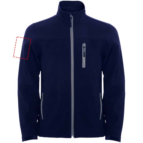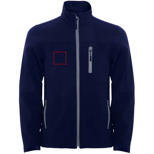 Двухслойный софтшелл. Обратная молния с герметичным эффектом, бегунком и комбинированной защитой для подбородка. Три внешних кармана на молнии и бегунком в тон. Регулируемые манжеты на липучках. Низ с эластичным шнуром и упорами. 100 % водонепроницаемый материал. Ветрозащитный материал.