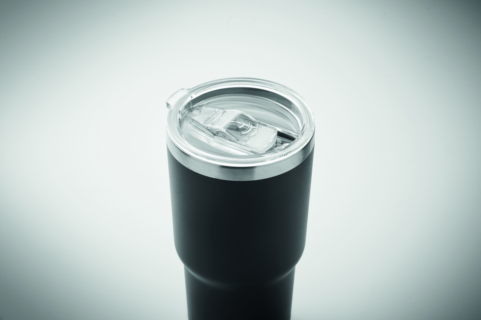 Double wall recycled stainless steel (90% recycled stainless steel and 10% stainless steel) tumbler. Lid with sliding sip hole. Leak-free. Capacity 550 ml