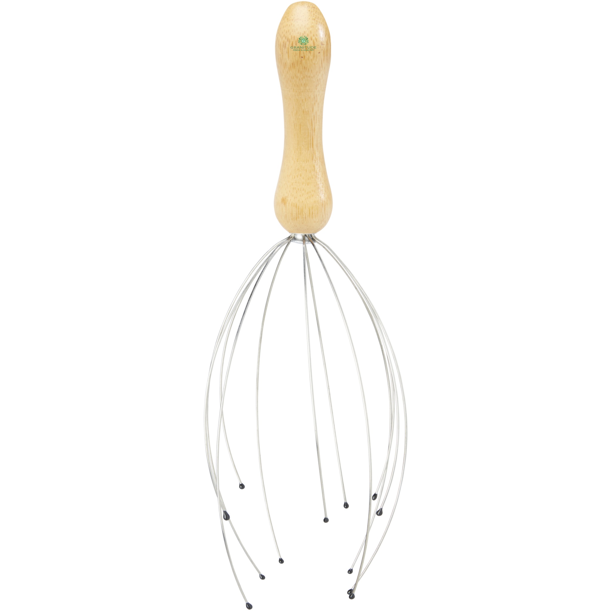 Hator Массажер головы имеет 12 движущихся гибких пальцев из проволоки с резиновыми наконечниками, которые гладко скользят по волосам, создавая мягкое ощущение покалывания, улучшающее ваше настроение. Ручка массажера сделана из бамбука, который добывается и производится в соответствии со стандартами устойчивого развития.