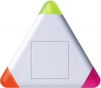 Трехцветный пластиковый маркер-выделитель, треугольный корпус. Цвета маркера: желтый, розовый и оранжевый.