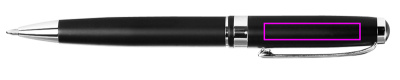 Высококачественная металлическая ручка матово-черного цвета с блестящими серебряными аппликациями и элегантным корпусом. Мы выгравируем ваш логотип под зажимом.