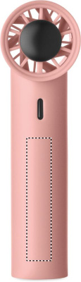 Mini handheld fan in ABS with screen display and 5 speed settings. Includes replaceable 2600mAh rechargeable lithium battery.