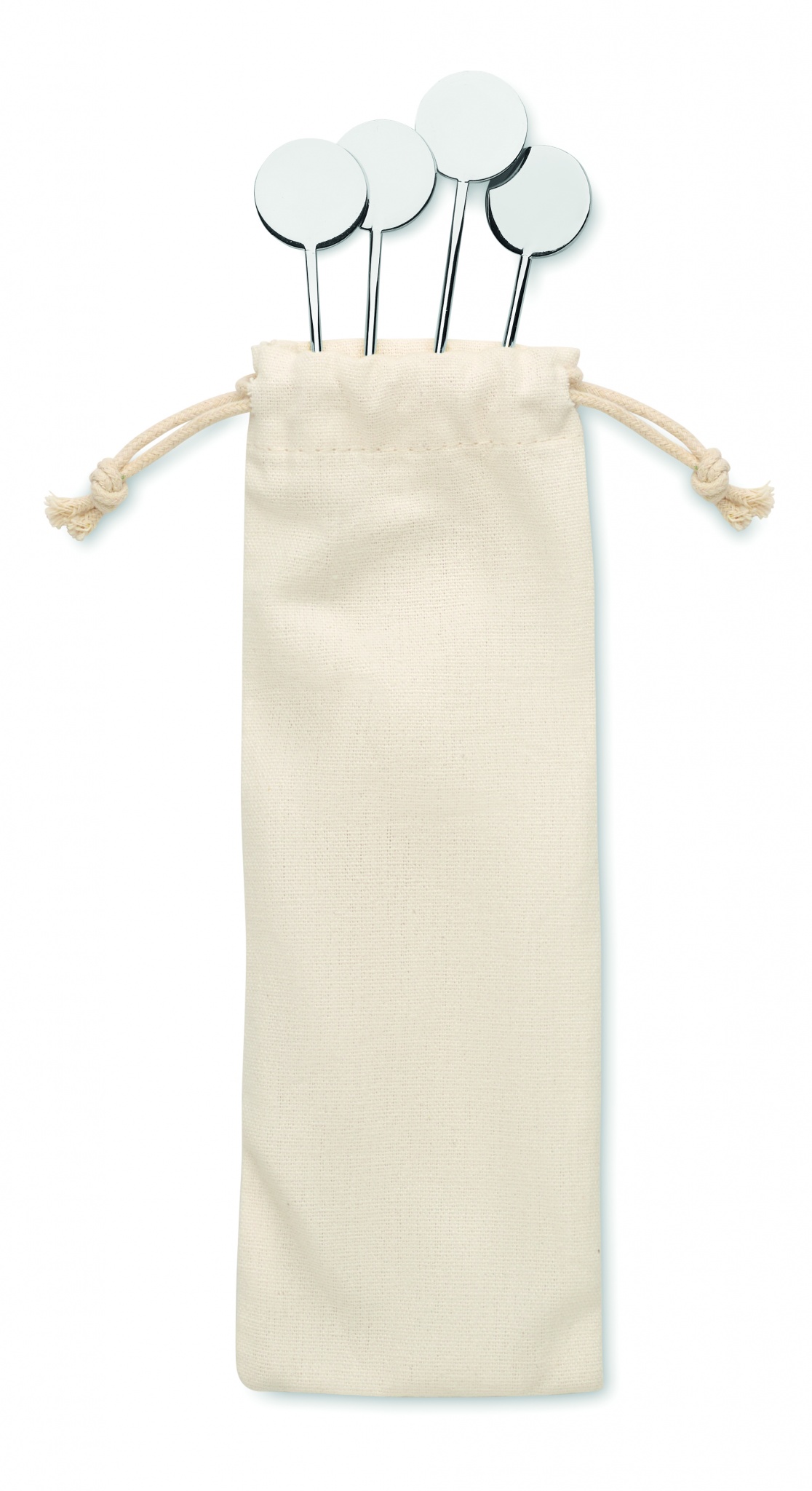 Набор из 4 размешивателей для напитков из нержавеющей стали в хлопковом мешочке на шнурке.