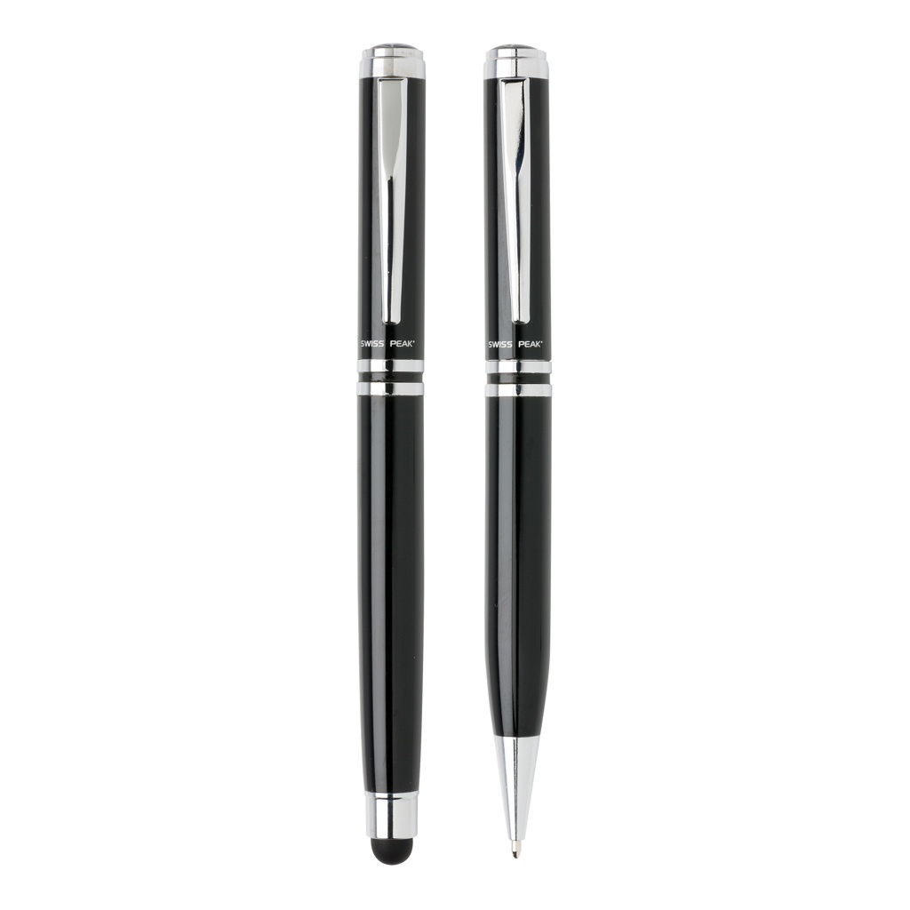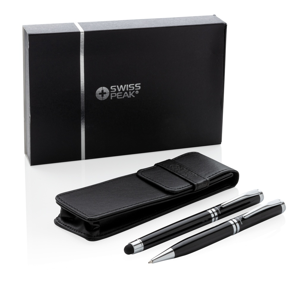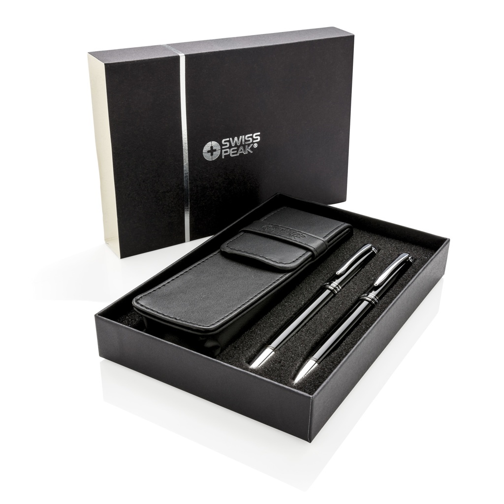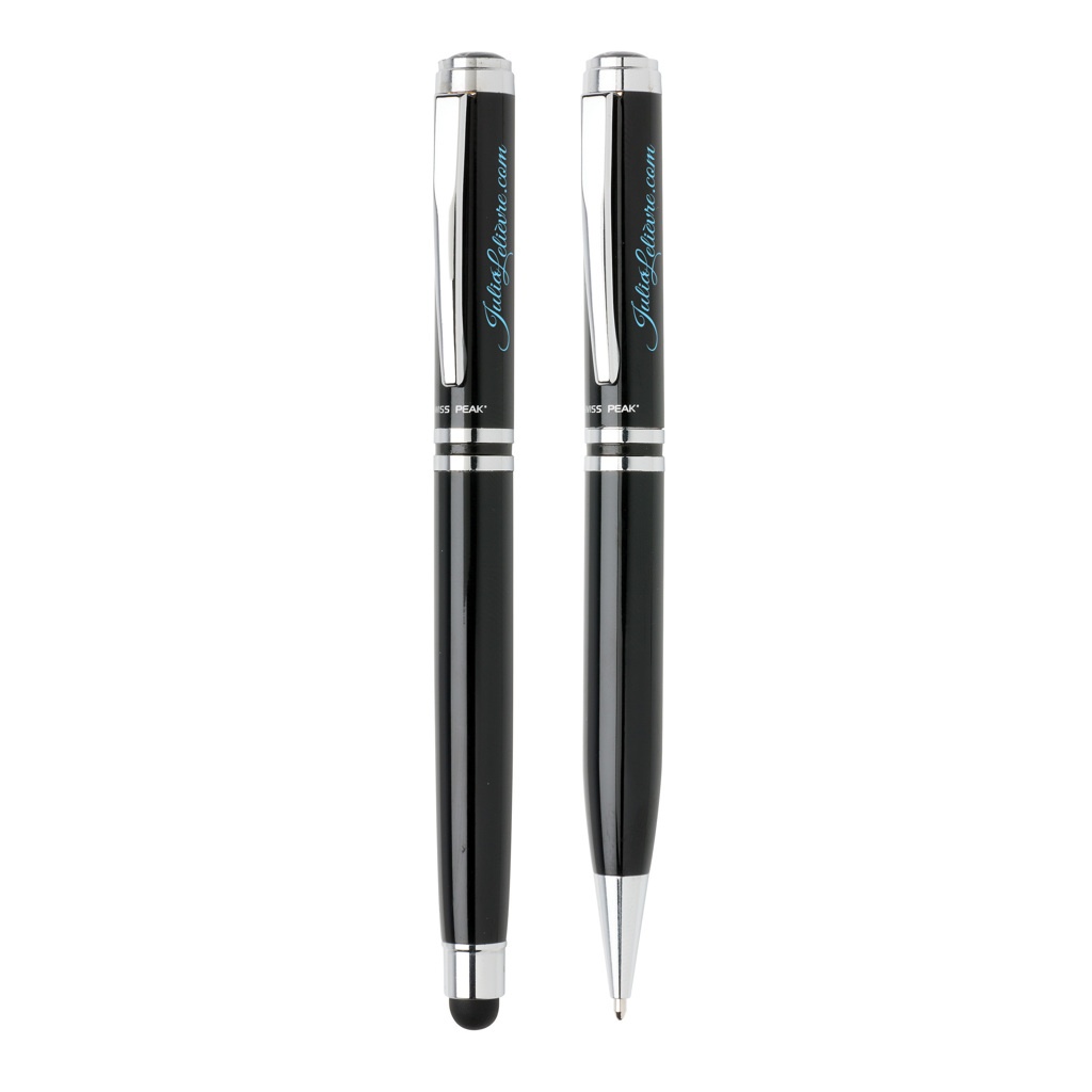 Аутентичный набор ручек, обладающий всеми признаками классического качества. Высококачественная тяжелая латунная металлическая ручка-роллер со стилусом и шариковая ручка с брендингом Swiss Peak. Включает премиальный чехол из искусственной кожи и подарочную коробку. Синие чернила.