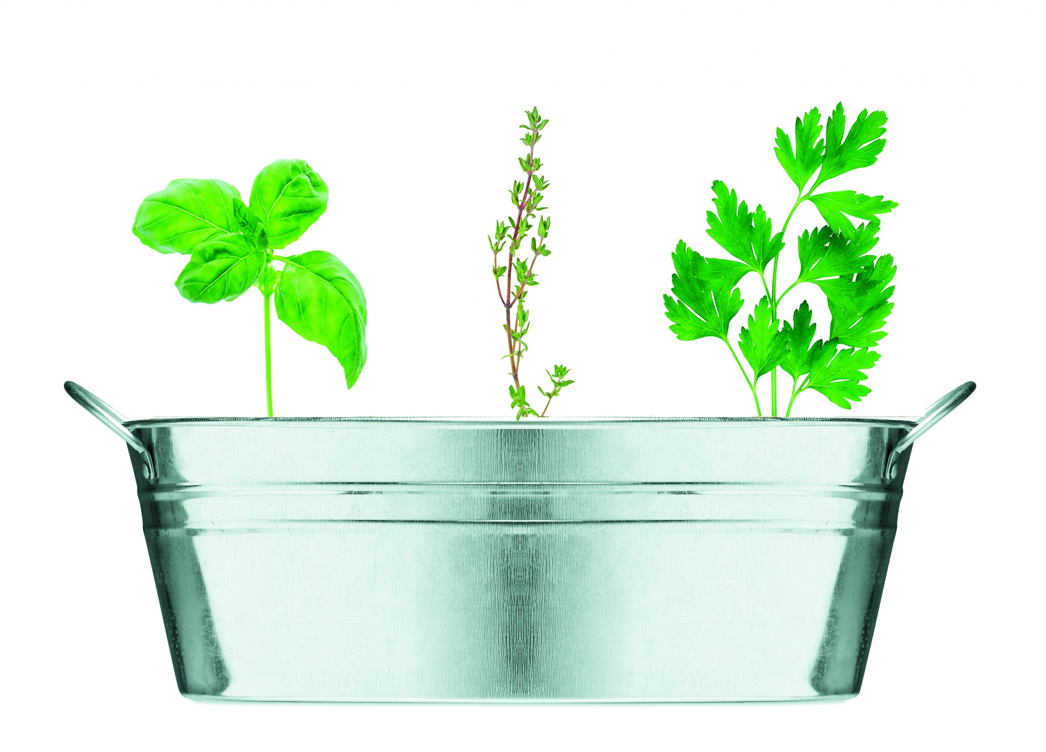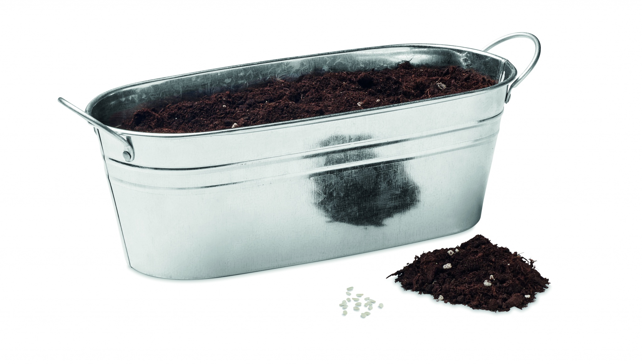 Набор семян 3 видов трав в цинковой емкости для выращивания. В состав входят семена базилика, тимьяна и петрушки, включая садовый компост. Сделано в ЕС.