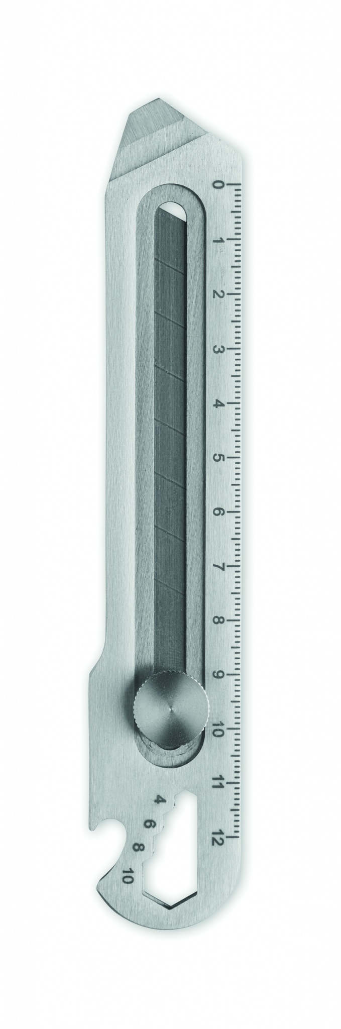 Выдвижной канцелярский нож из нержавеющей стали с 8 лезвиями, открывалкой для бутылок, гаечным ключом и линейкой.