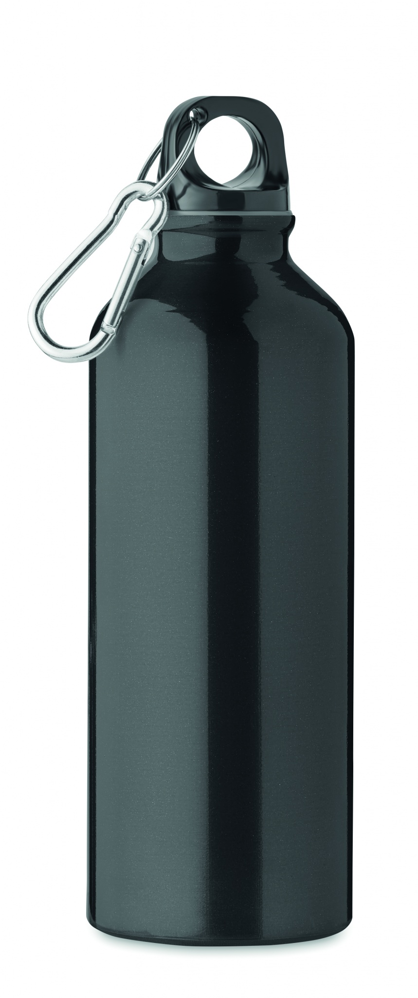 Одностенная бутылка для воды объемом 500 мл, изготовленная из переработанного алюминия, с карабином, Черный
