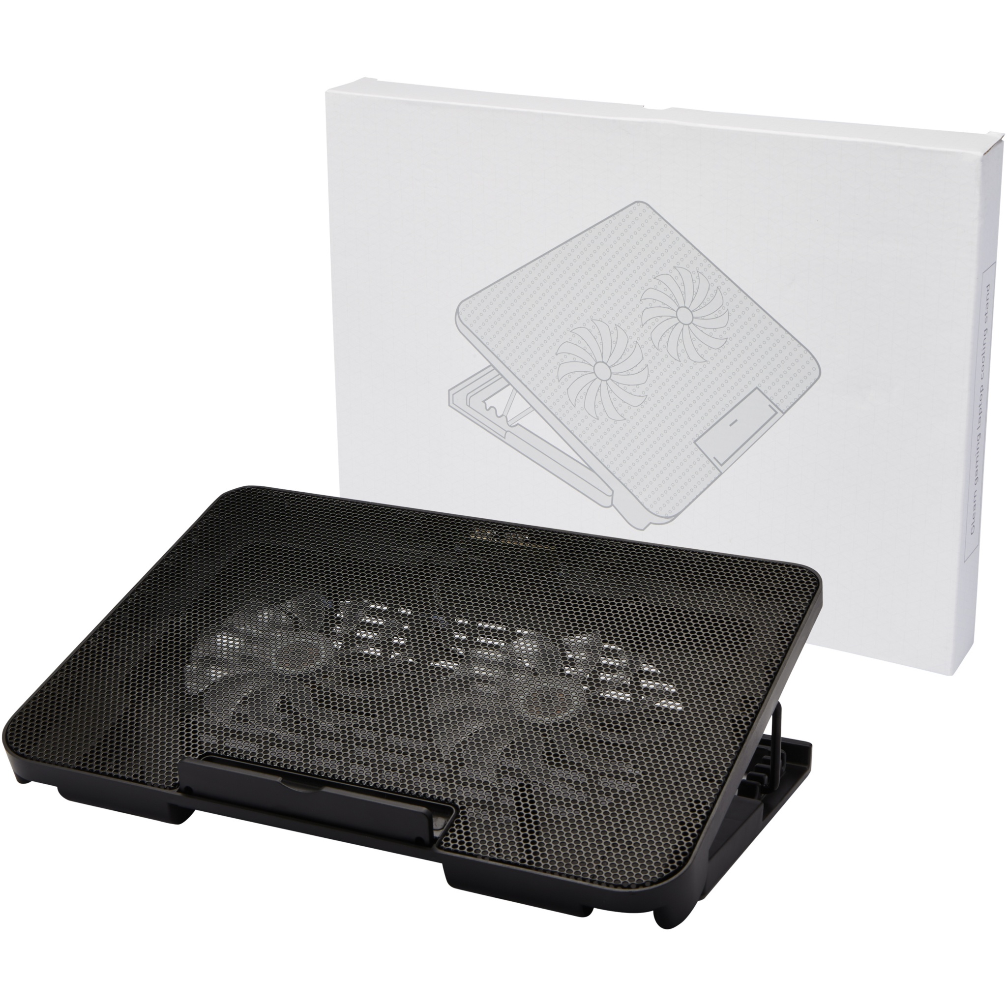 Охлаждающая подставка для ноутбука с 4 уровнями регулировки высоты для игр или просмотра фильмов под наиболее удобным углом (10°-23°). Два бесшумных вентилятора обеспечивают сильный поток воздуха для предотвращения перегрева ноутбука. Большая плоская поверхность, совместимая с большинством ноутбуков на рынке, может выдержать вес до 20 кг. Подставку можно полностью сложить для удобной транспортировки. Оборудована 2 встроенными USB-портами, которые можно использовать в качестве USB-концентратора, поддерживающего USB 2.0 со скоростью передачи данных до 60 МБ/с. Поставляется в подарочной коробке из экологичного материала.
