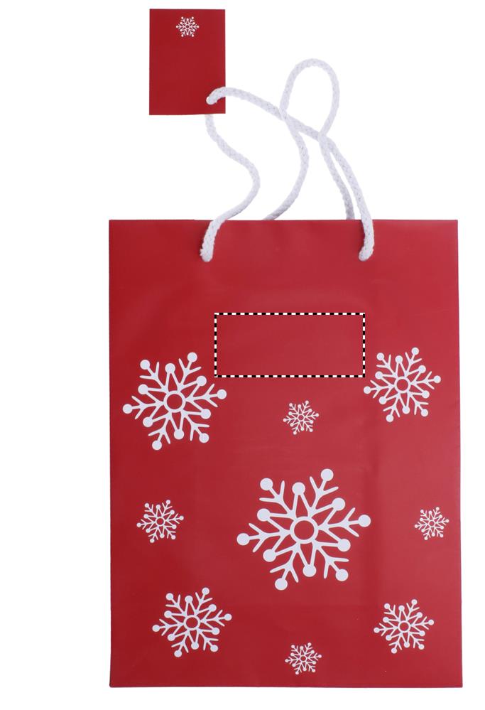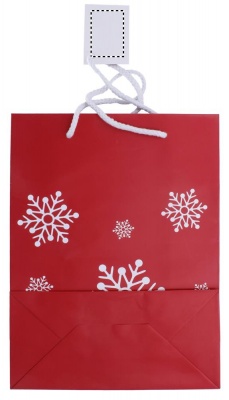 Подарочный пакет в новом новогоднем дизайне, украшенный снежинками. Средний размер.