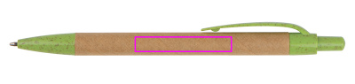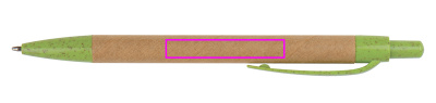 Шариковая ручка из переработанного картона, с синим стержнем. Все аппликации сделаны из устойчивой пшеничной соломы. Мы печатаем ваш логотип на стержне.