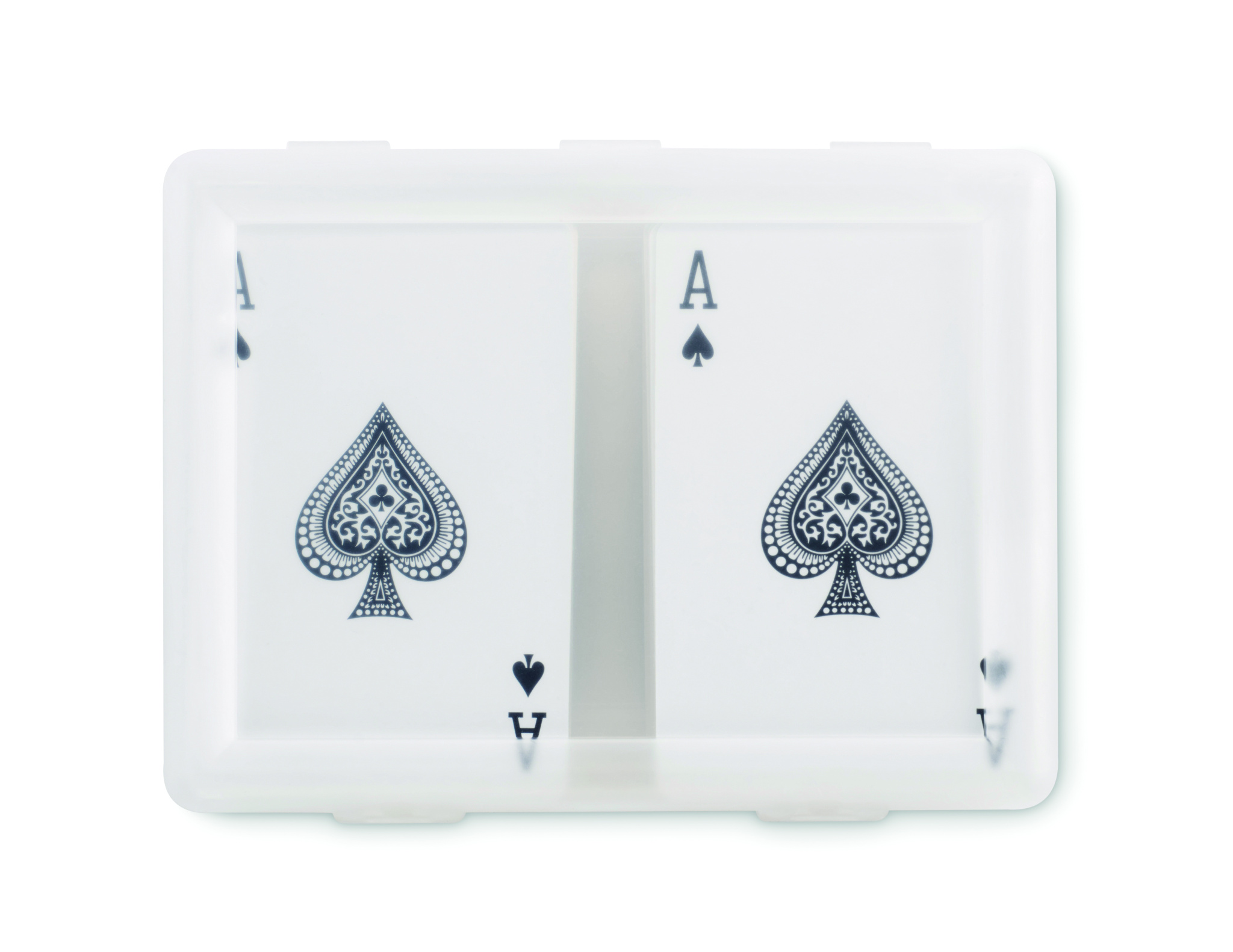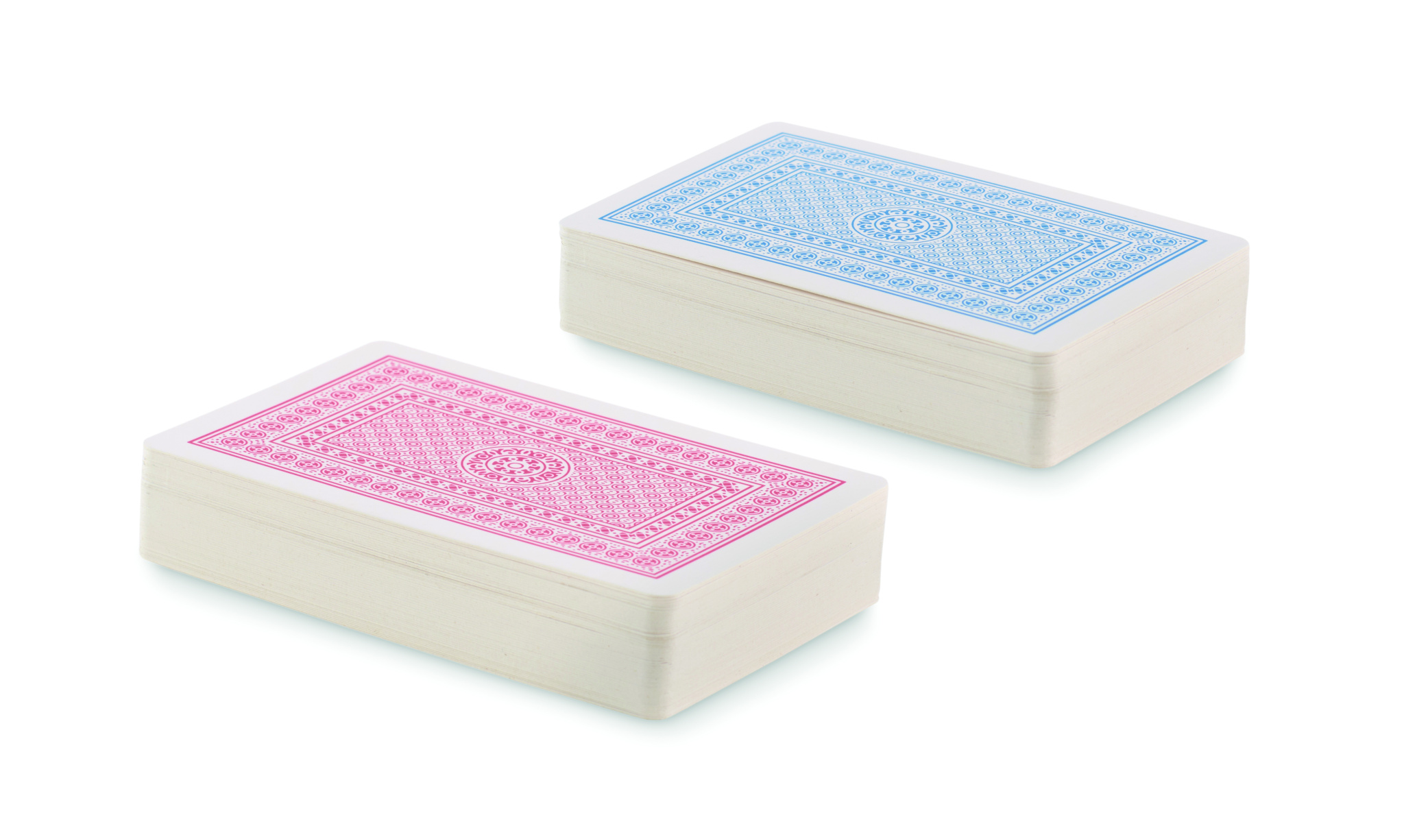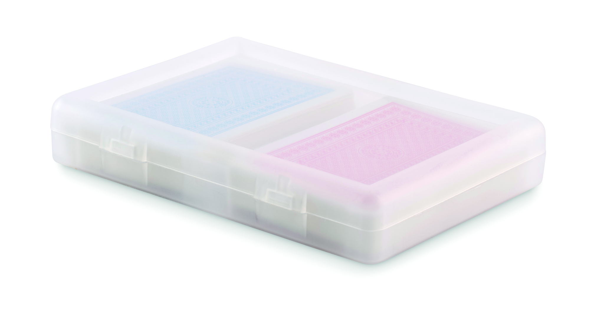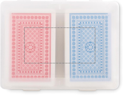 Set of 2 classic playing cards in recycled PP case. 2x54 cards (red and blue).