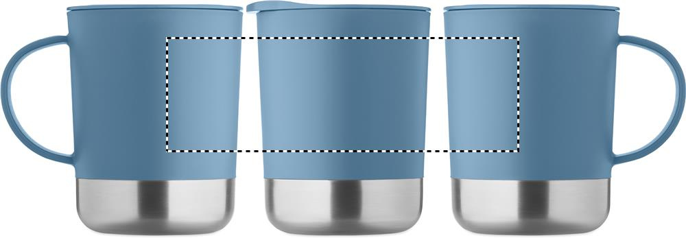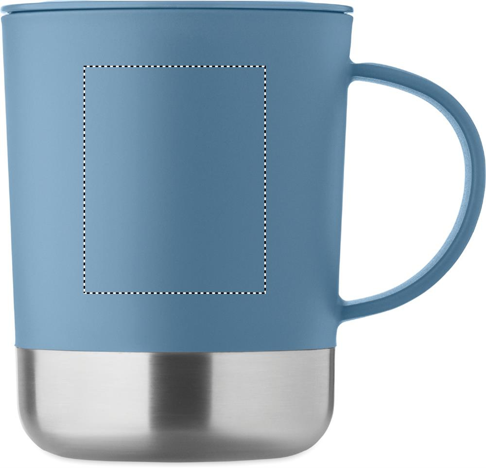 PP mug with recycled stainless steel base (90 % recycled stainless steel and 10% stainless steel) and PP sliding lid. Capacity: 300 ml.