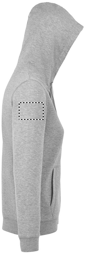 SOL'S SPIKE WOMEN. Женская толстовка с капюшоном на молнии, 80% хлопка кольцевого прядения - 20% полиэстера. Подкладка с начесом. Снаружи: 100% хлопок, ФЛИС 280 LSF (ткань с низкой усадкой). Втачные рукава, 2 передних кармана-кенгуру. Скроено и прошито. Капюшон на подкладке с шнурком в тон, манжеты и подол в рубчик 2x2. Воротник-полумесяц с внутренней стороны, проклеенная горловина, молния YKK. OEKO-TEX®. Продается только с принтом.