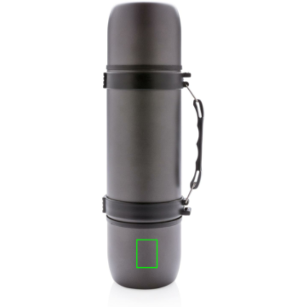 Термос из нержавеющей стали с двойными стенками, элегантный дизайн, ручка и плечевой ремень, вмещает две подходящие чашки для оптимального питья. Герметичен, можно мыть только вручную. Объем 700 мл.
