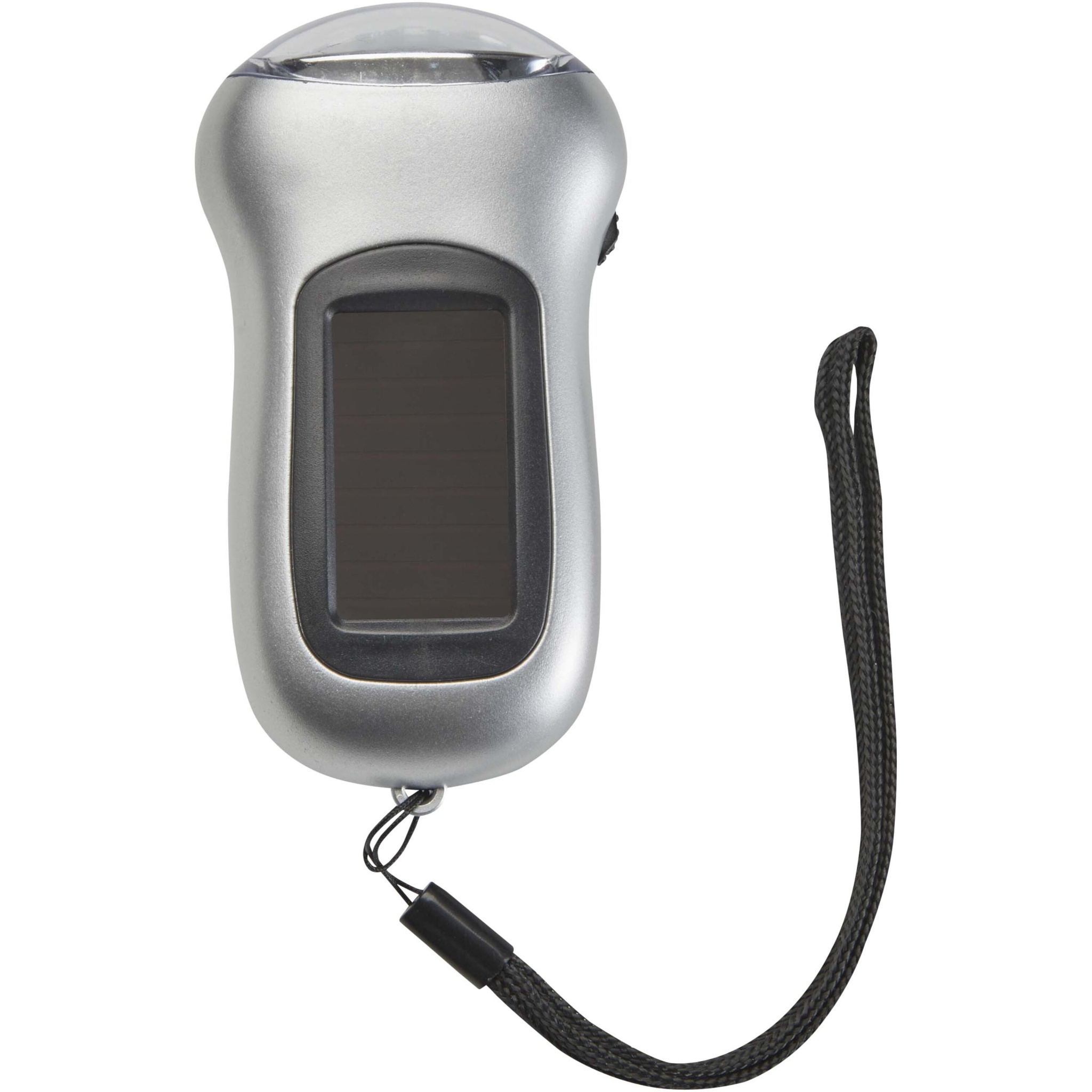 Компактный солнечный фонарик с яркостью 10.000 мкд. Фонарик также можно включить вручную, повернув ручку.