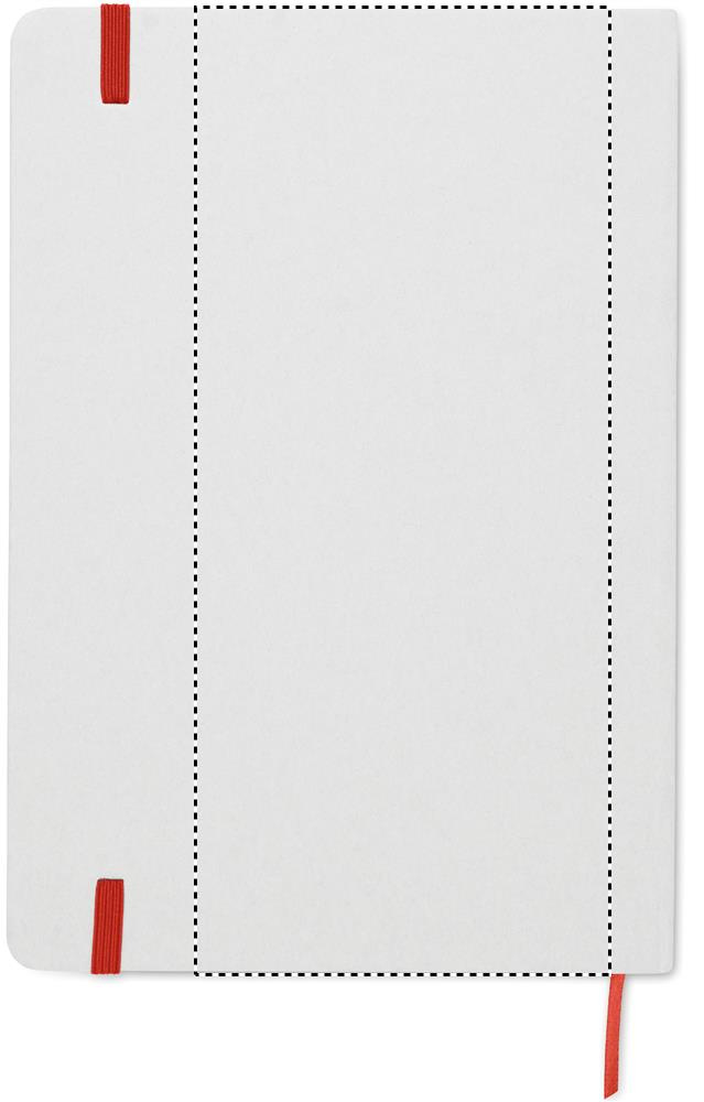 A5 anteckningsbok med omslag av hård återvunnen kartong. Svart omslag. Inbunden med 160 linjerade sidor av återvunnet papper (80 ark). Elastiskt stängnings- och läsband matchar den underliggande färgen. Efter lasergraveringen kommer logon att träda fram i samma färg som bandet.