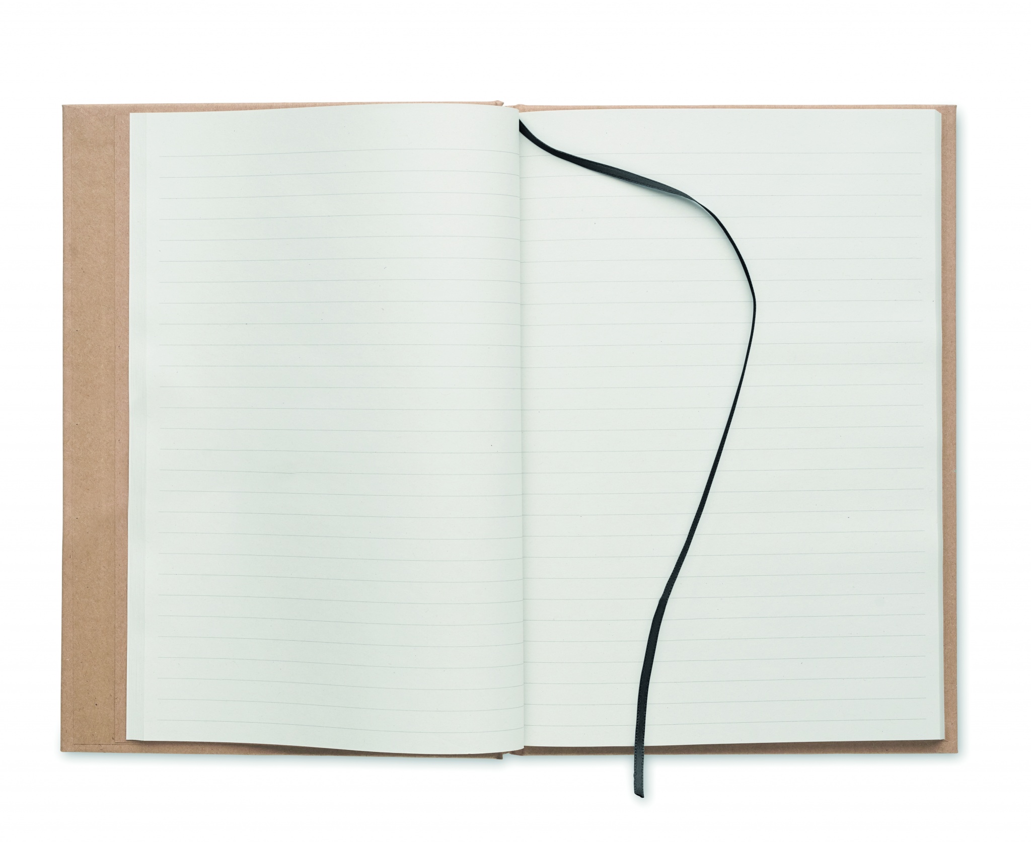 A5-noteringsbok med hårda pärmar i återvunnen kartong. Inbunden med 200st linjerade sidor i återvunnet papper (100 ark/80 gsm). Elastiskt band och sidmarkeringsband. Tillverkad i EU.