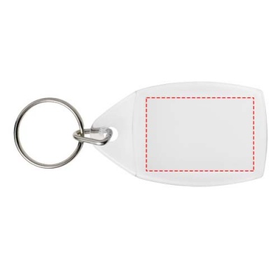 Access nyckelring P5 i plast. Genomskinlig nyckelring P5 med delad metallring. Tryckinläggets dimensioner: 3,5 cm x 2,4 cm. GPPS-plast.