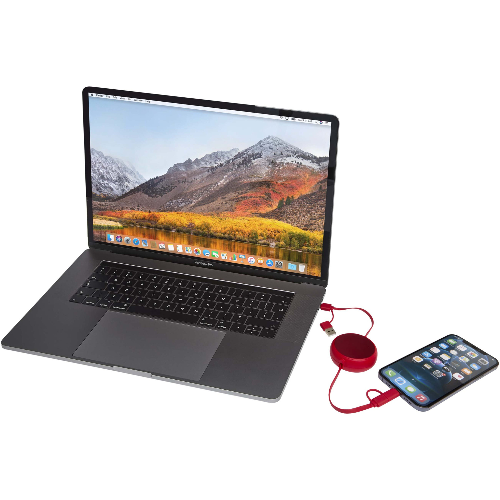 Logotrade profilreklam bild: Alasia 5-i-1 100 cm utdragbar datasynkroniserings- och 45 W snabbladdningskabel av återvunnen plast och aluminium