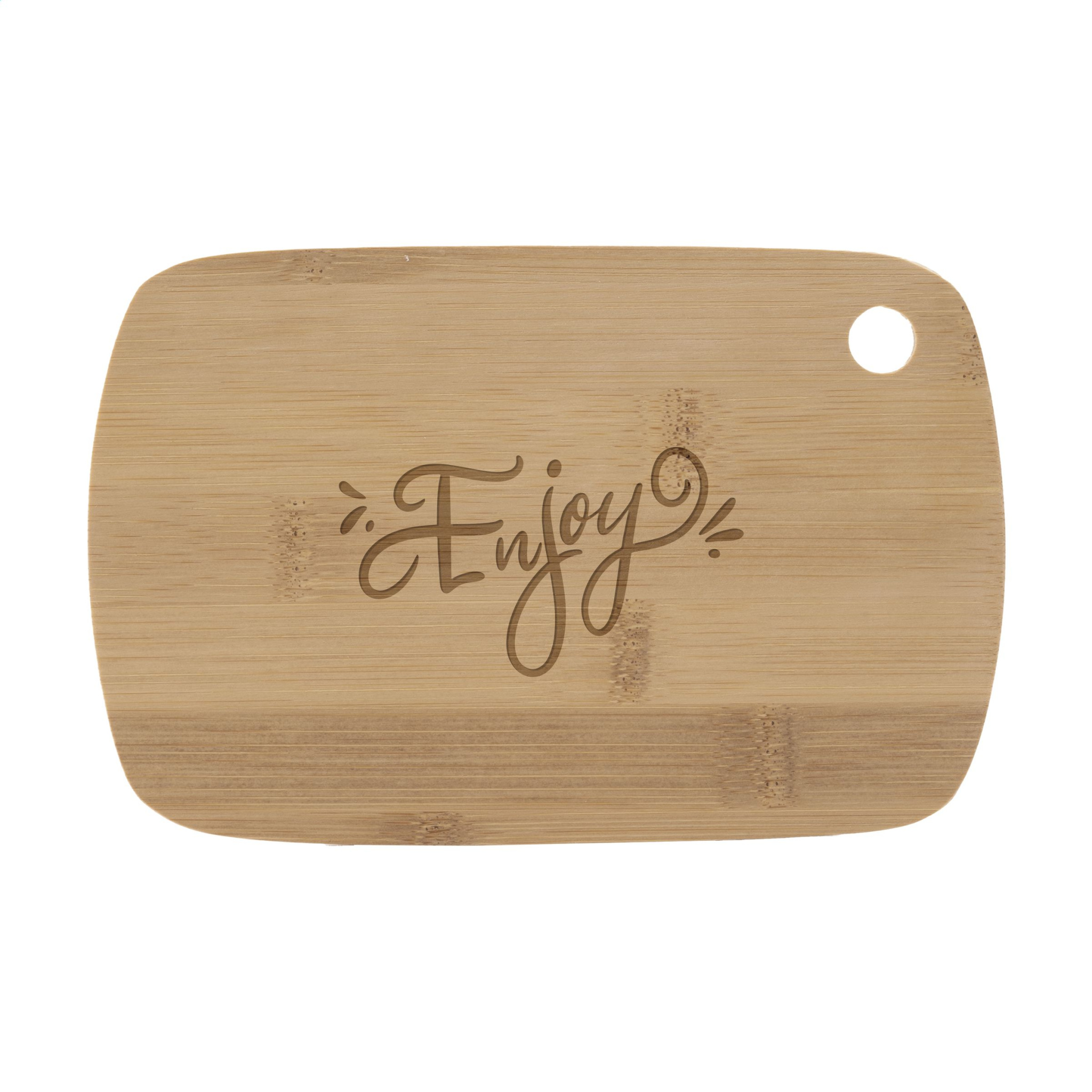 Ostbräda av bambu i liten, behändig storlek. Med öppning för upphängning. Inkluderar ostkniv. Bambu är ett naturmaterial. Som ett resultat kan färgen variera per produkt. Artiklar levereras som ett set med, varje set individuellt förpackad.