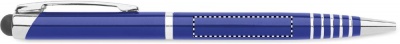 Kulspetspenna i återvunnen aluminium med vridmekanism och stylus. Blått bläck.