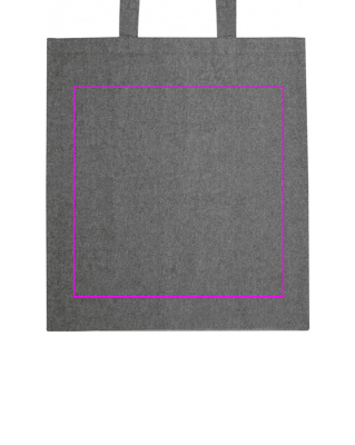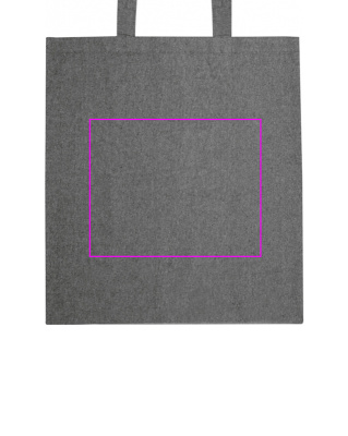 Återvunnen Eco Tex Standard 100 bomullspåse med långa handtag (140g/m²). Din logotyp kommer att tryckas på ena sidan av väskan.