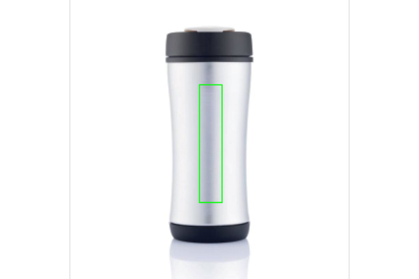 Placera ditt varumärke på en hållbar produkt, som tar ansvar. Boom håller koll på din dryck, 225 ml, tät stängning och dubbelvägg om du lovar att hålla koll på hur den återvinns. Vid slutet på muggens livslängd så kan du demontera ned hela muggen, plast för plaståtervinning och metall för metallåtervinning etc. Registrerad design®
