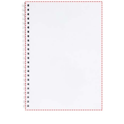 Desk-Mate® spiral A5-anteckningsbok. Standardmodellen innehåller 50 tomma ark 80 g / m2 papper, ett glansigt främre kortomslag (250 g / m2) och ett 450 mikron transparent polypropenomslag. Svart eller vit spiral. Finns även med 100 ark. Du kan anpassa sidorna i denna mångsidiga anteckningsbok med vilken design som helst - så oavsett om du vill ha linjerat papper, rutor eller prickar - allt är möjligt!