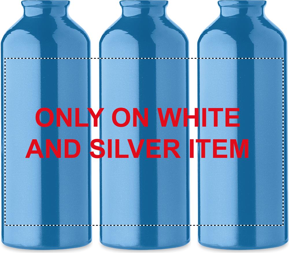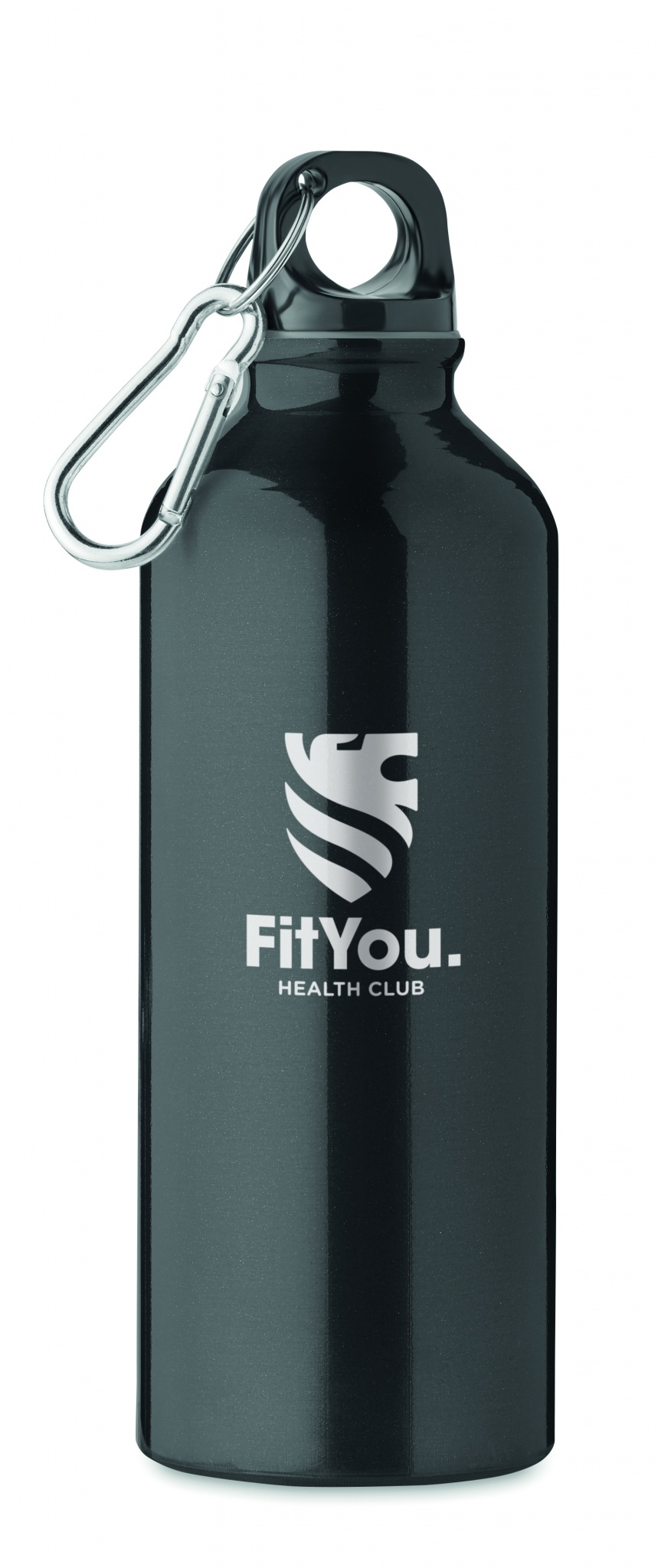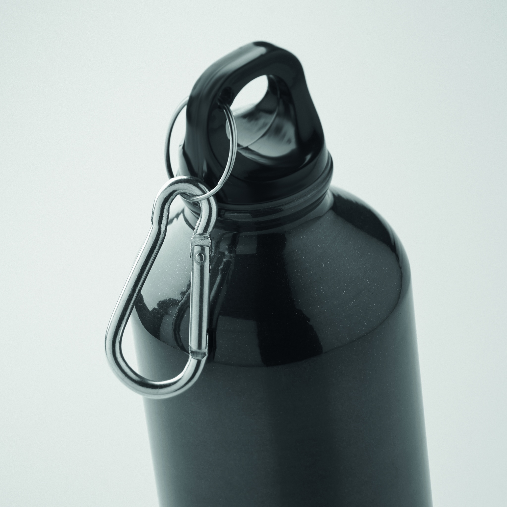 Enkelväggig flaska i återvunnen aluminium med karbinhake. Kapacitet: 500 ml. Läcker inte. Karbinhaken är inte avsedd för klättring (icke yrkesmässig användning). Sublimationstryck finns endast på vit produkt.