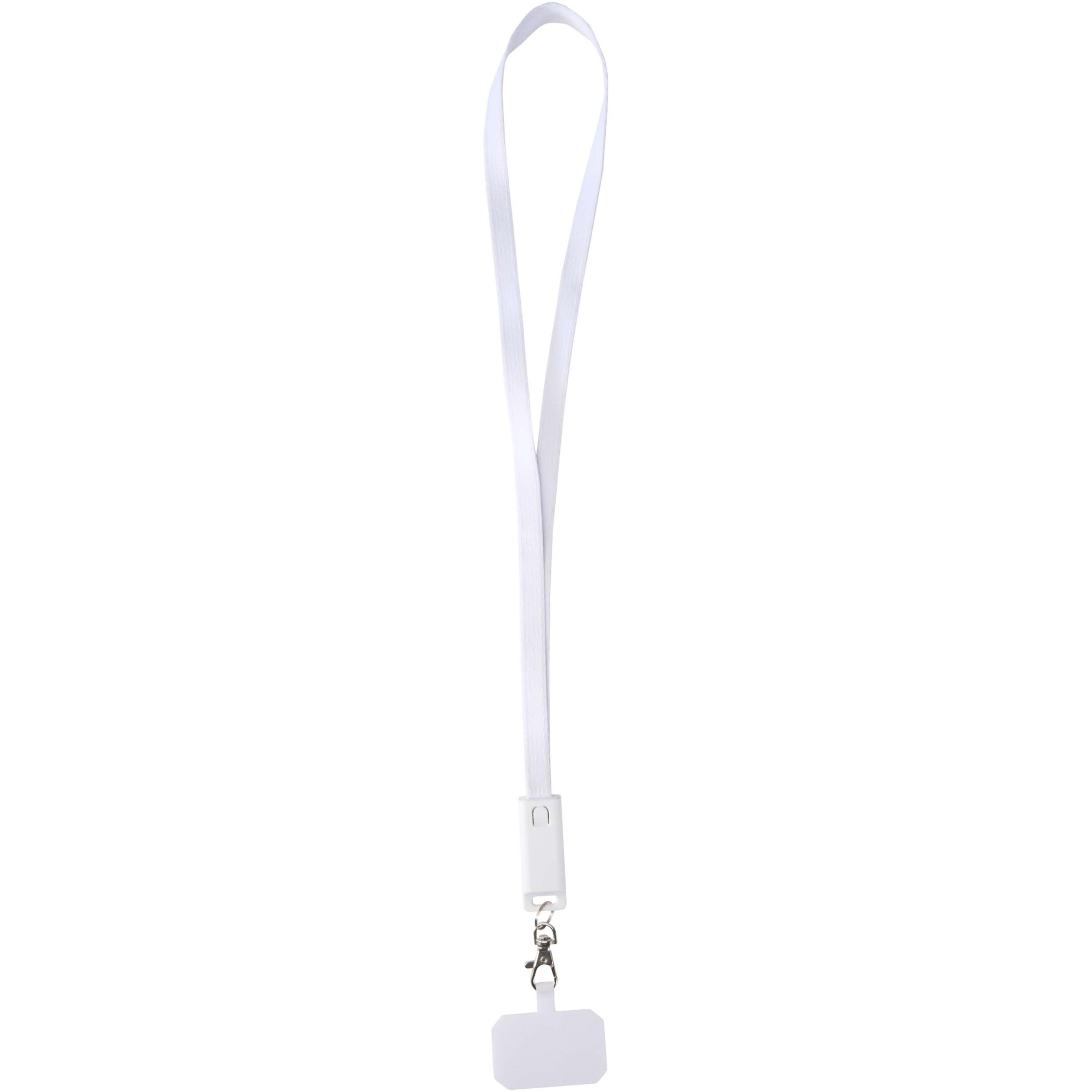 Franz nyckelband för smartphone av återvunnen plast med inbyggd datasynkroniseringskabel och 65 W snabbladdande 5-i-1-kabel, Vit