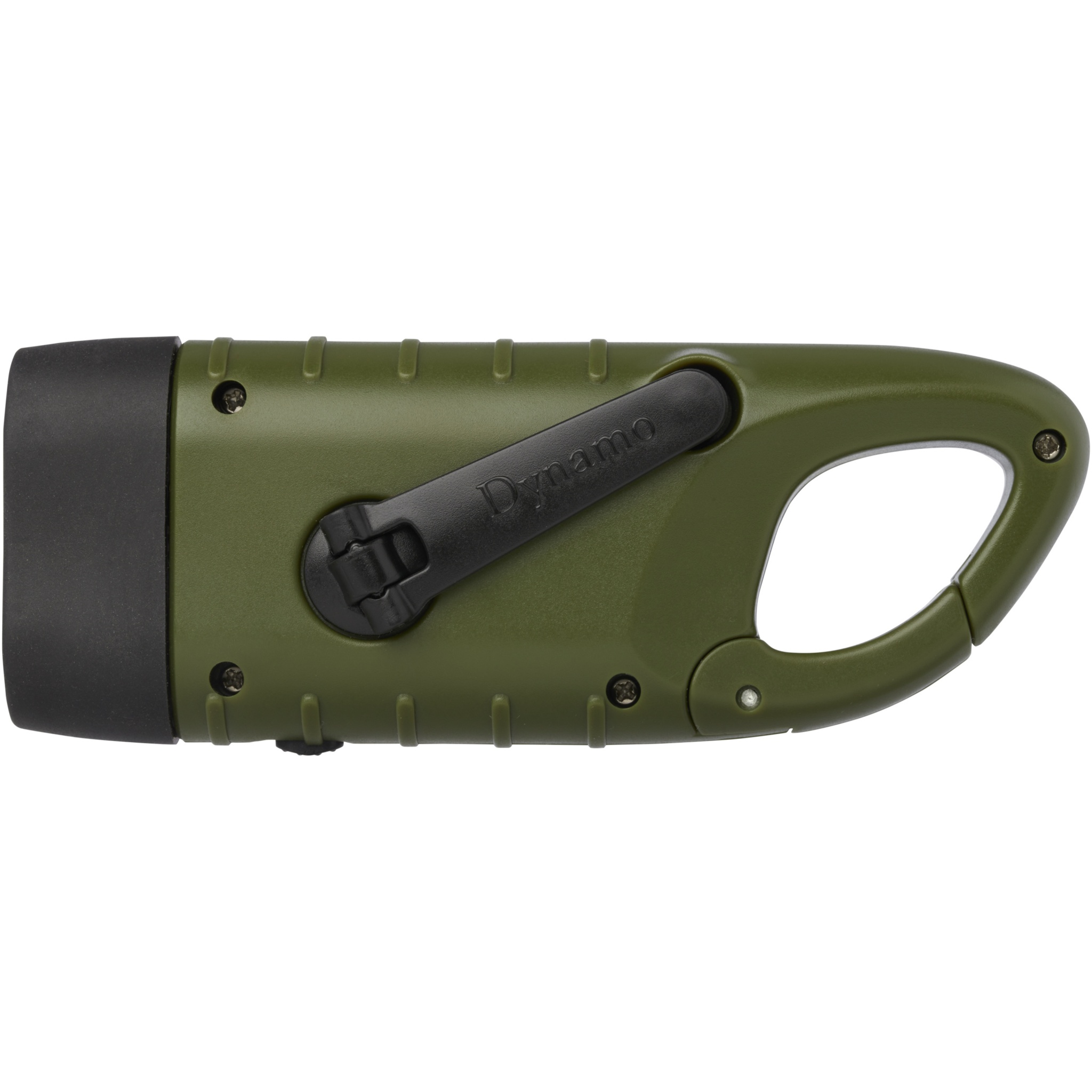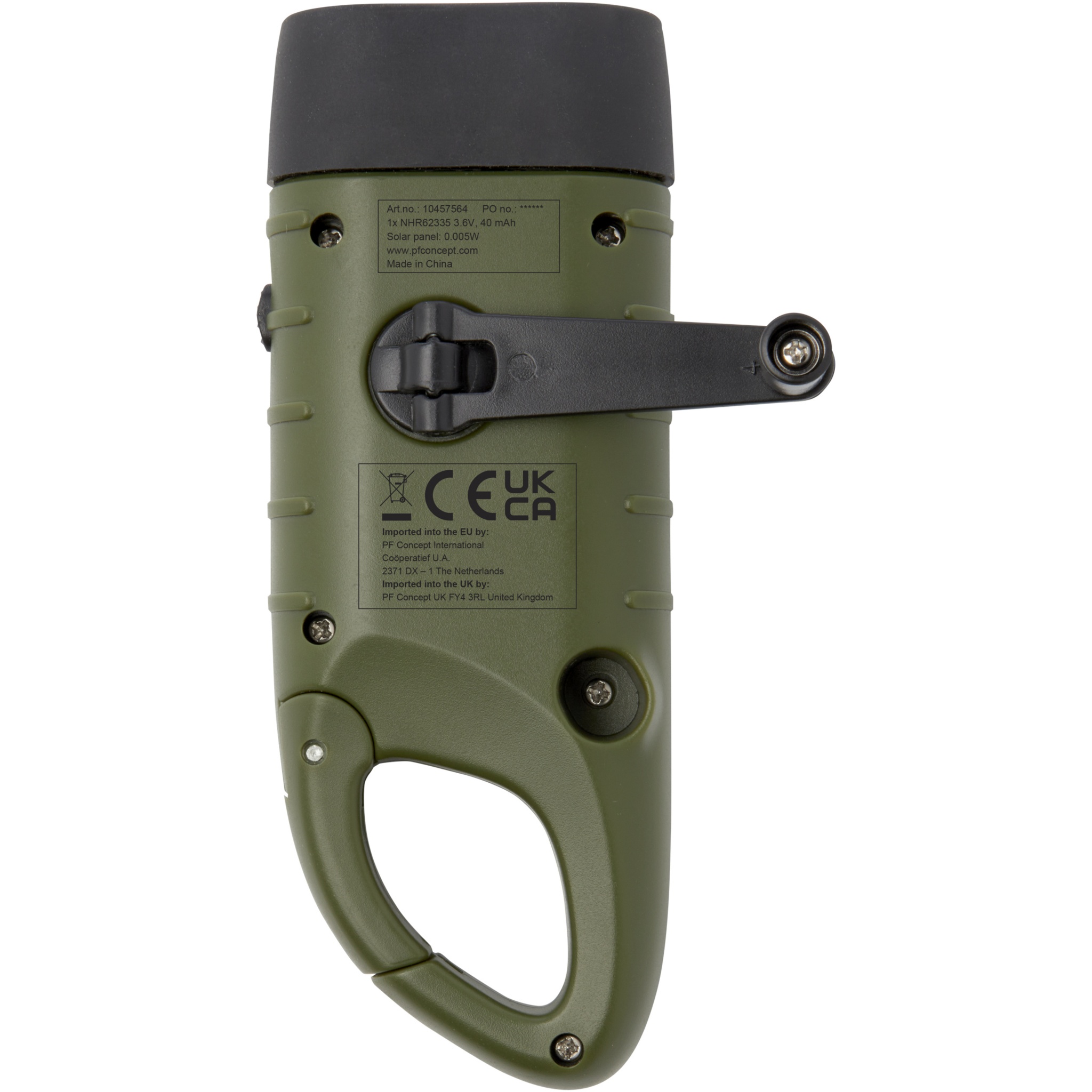 Helios soldynamo-ficklampa med karbinhake av återvunnen plast, Armégrönt