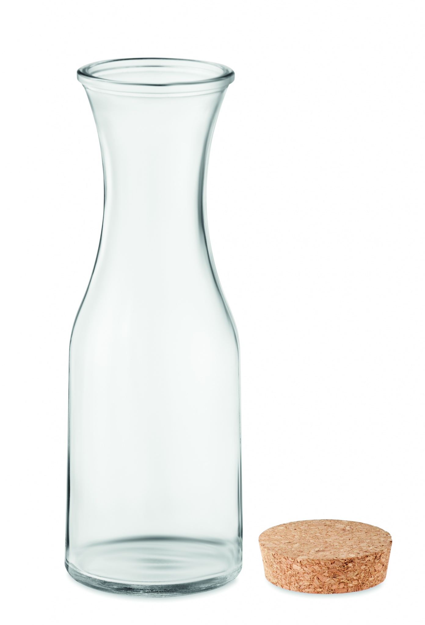 Karaff i återvunnet glas med lock av kork. Kapacitet: 1 liter.