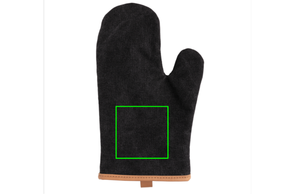 En välbehövlig följeslagare i köket, den vadderade vanten skyddar dina händer från varma föremål. Den separata tummen ger ett bra grepp, med dekorativa PU-detaljer. Tillverkad av rejäl 16oz. canvas. Levereras i presentförpackning. Maskintvätt 30 grader celsius, tvättas med liknande färger.