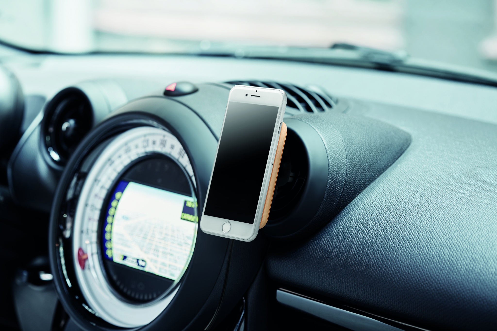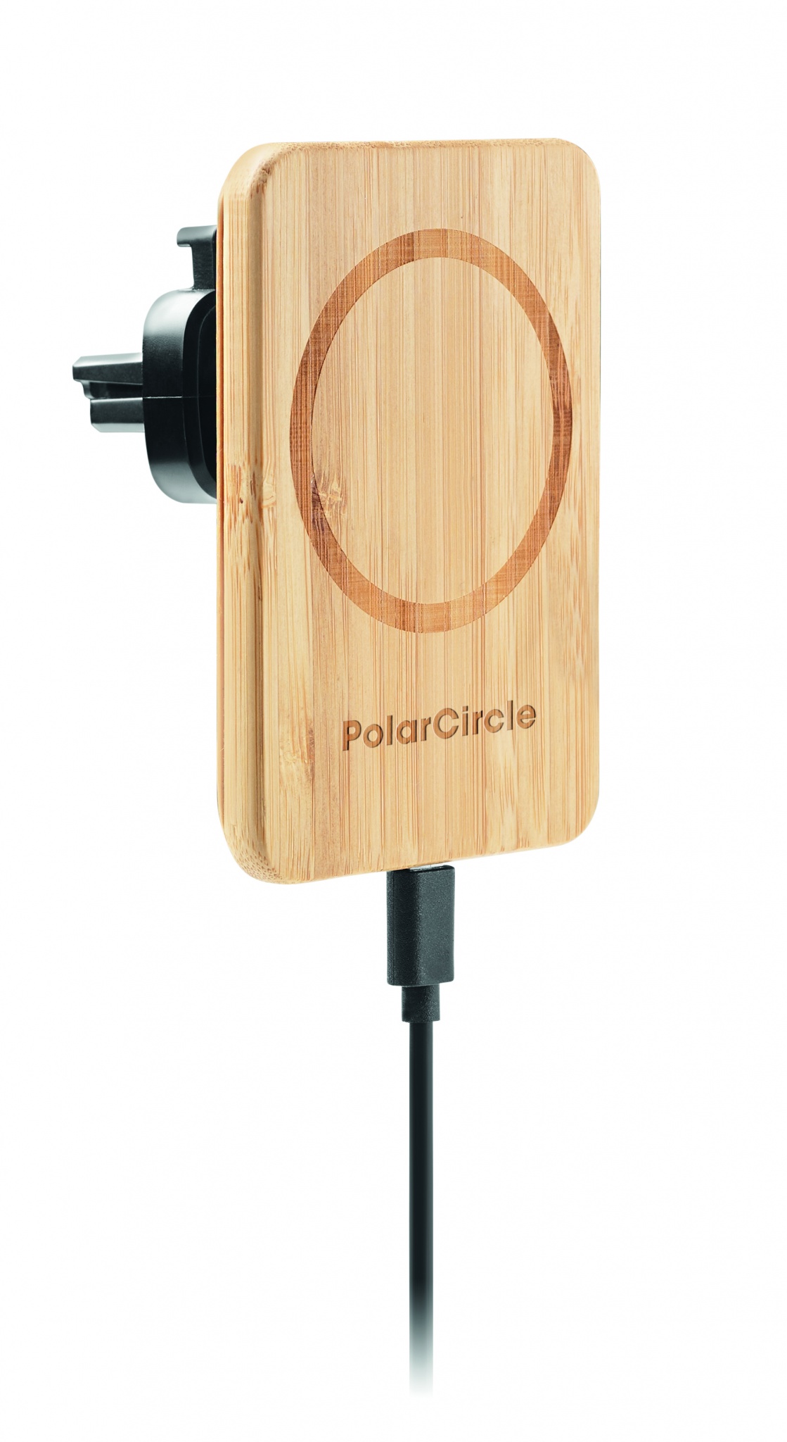 Magnetisk trådlös snabb laddare i bambu med bilfäste. Utgång: Uttag: DC 9V/1,67A (15W) för snabbladdning. Kompatibel med iPhone® 12 och nyare. Inkluderar ytterligare en magnetisk metallring för att stödja laddning av andra icke-magnetiska trådlösa telefoner som kan laddas trådlöst.