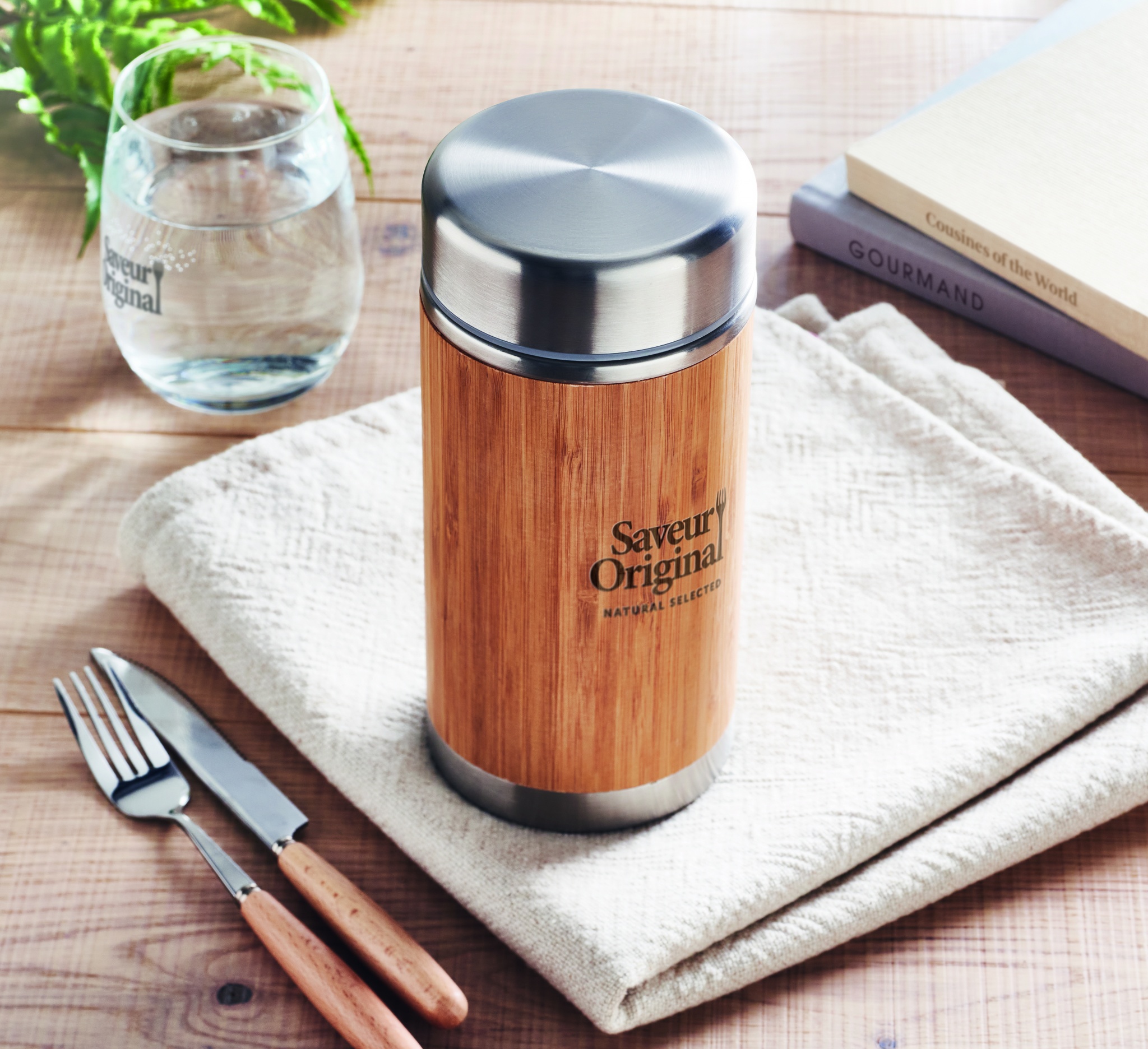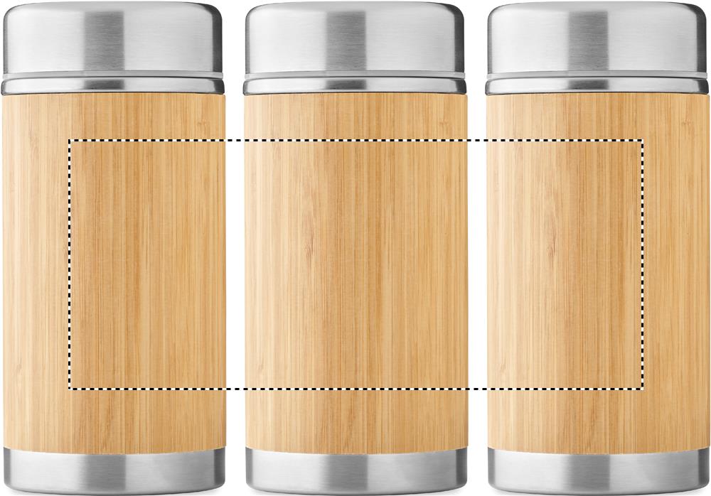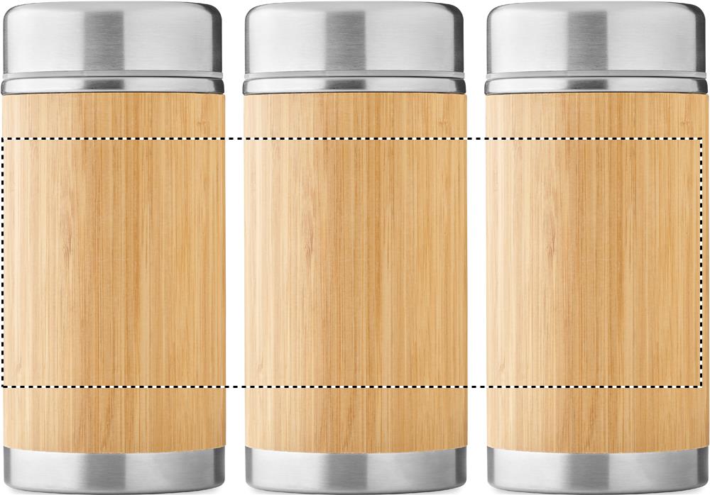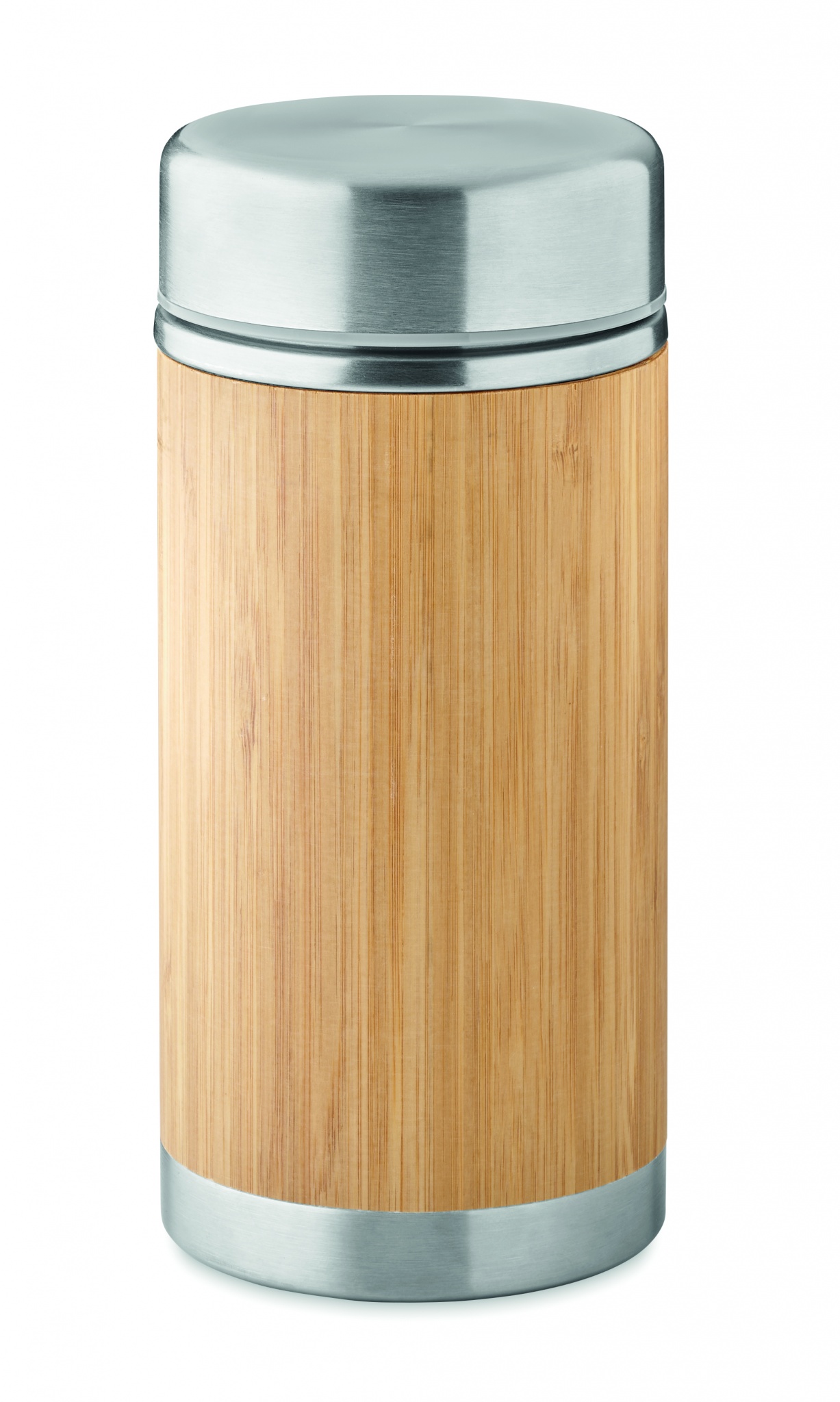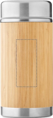 Mattermos i rostfritt stål med dubbelvägg och skruvlock i bambufinish. Kapacitet: 600 ml.