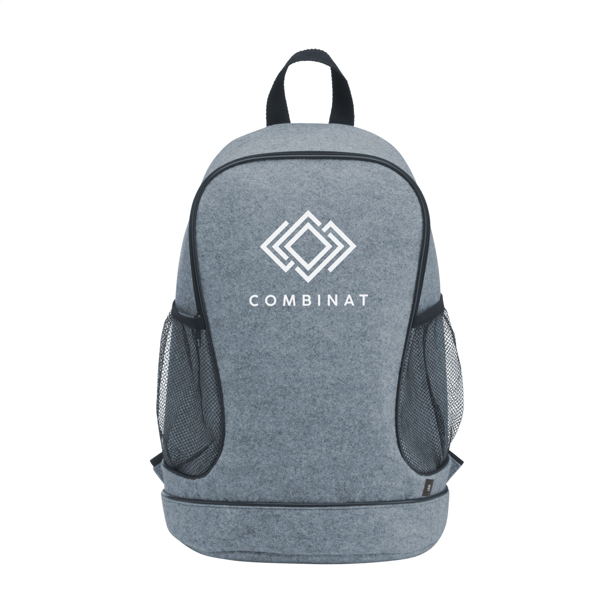 WoW! Tuff, praktisk ryggsäck tillverkad av robust RPET-filt (tillverkad av återvunna PET-flaskor). Funktionerna inkluderar ett generöst huvudfack och praktiska sidfickor i mesh samt justerbara och vadderade axelband. Väskan har en vadderad baksida för mer komfort och en praktisk bärögla. Kapacitet ca. 22 liter.