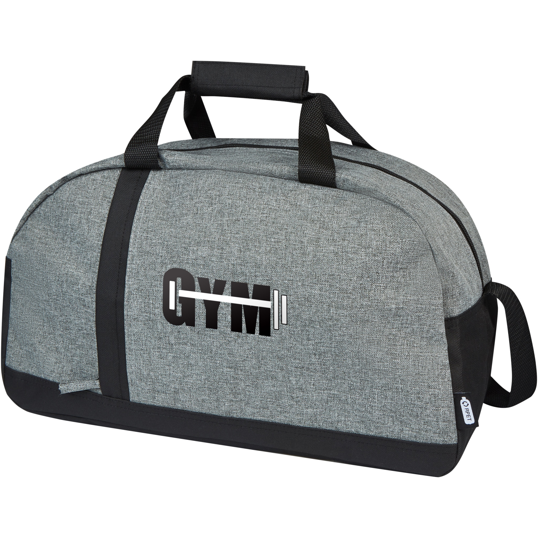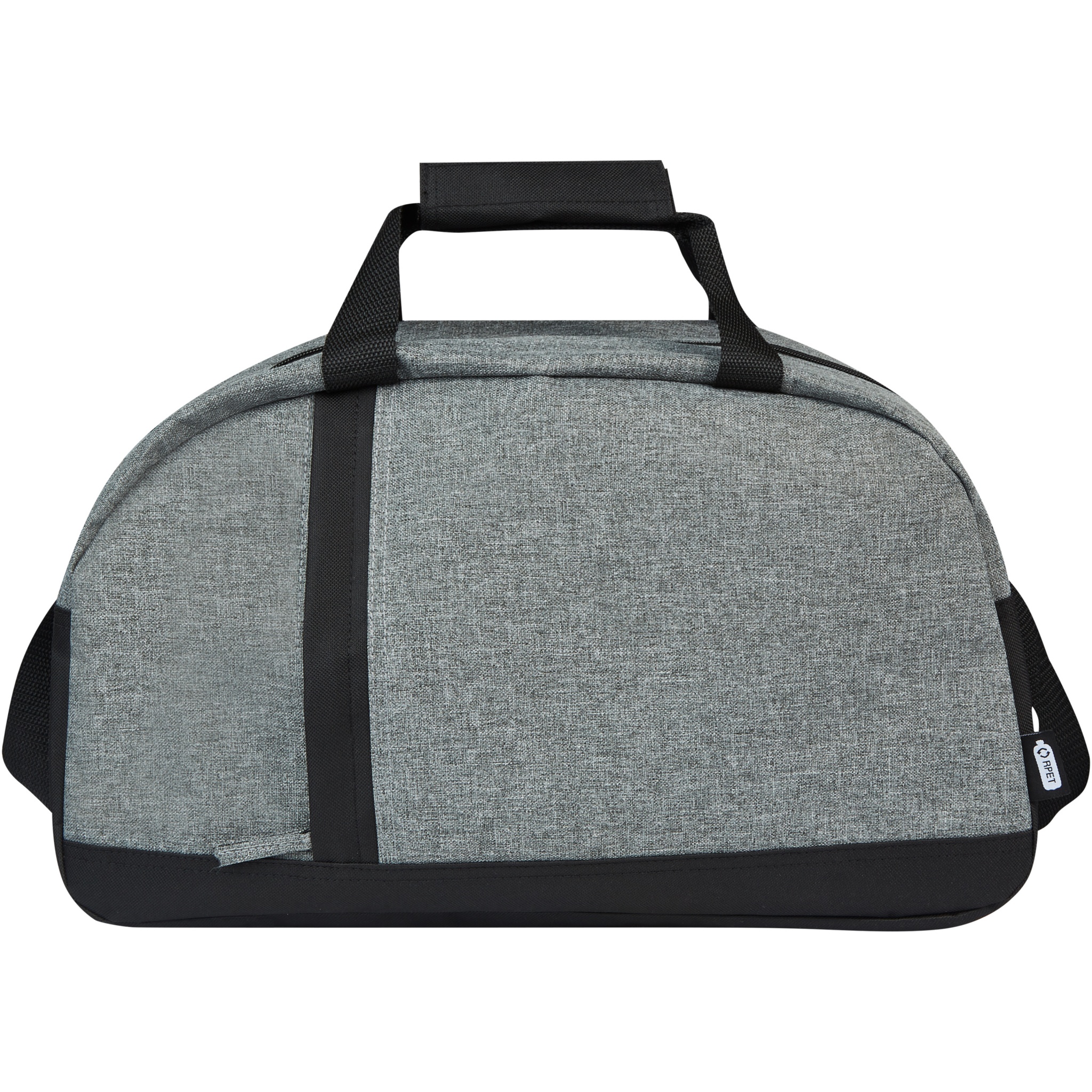 Sportduffelväskan Reclaim av återvunnen GRS är tvåfärgade och tillverkad av 100 % återvunnet material på utsidan och har en vertikal framficka med dragkedja och ett rymligt huvudfack med dragkedja. Tygklädda bärhandtag och reglerbara axelband för komfort när du bär den gör den lämplig för sportaktiviteter.