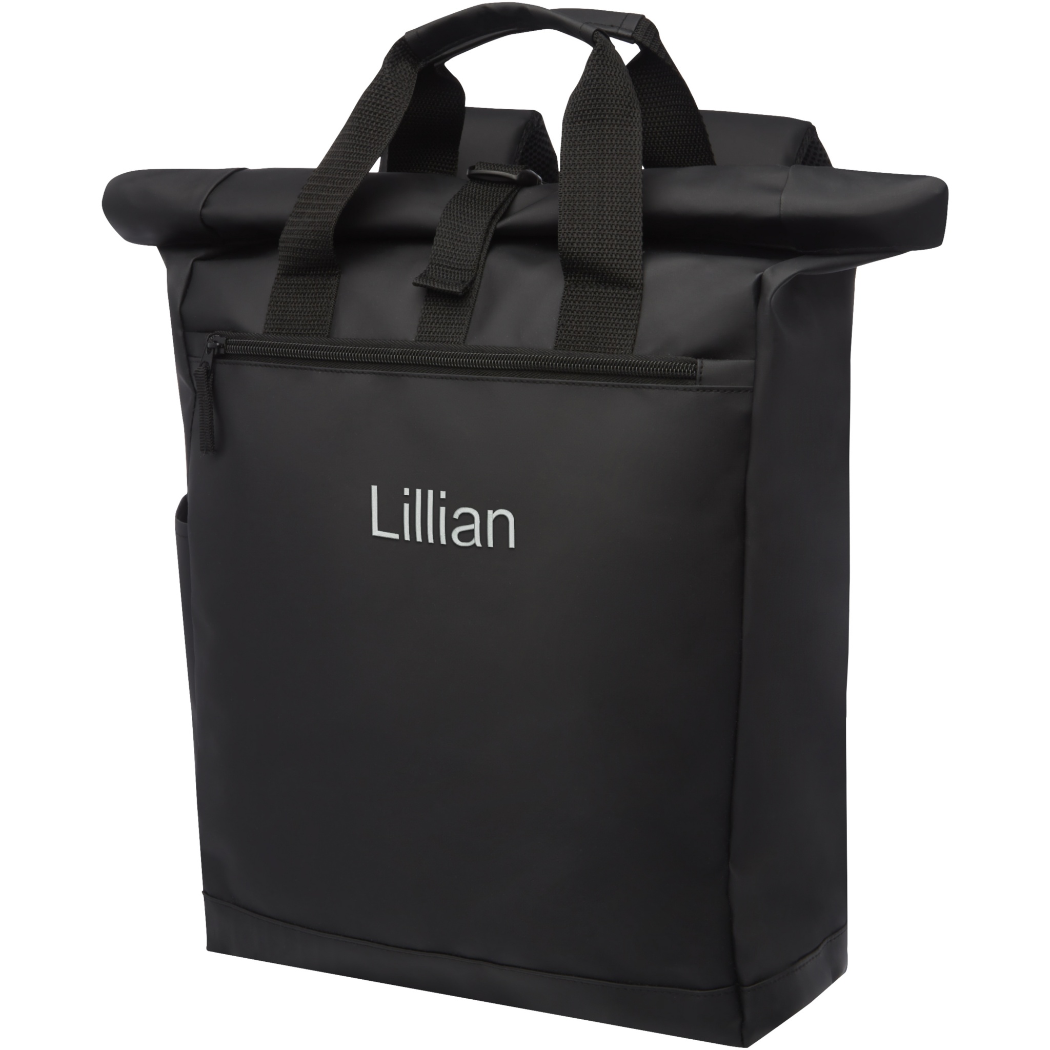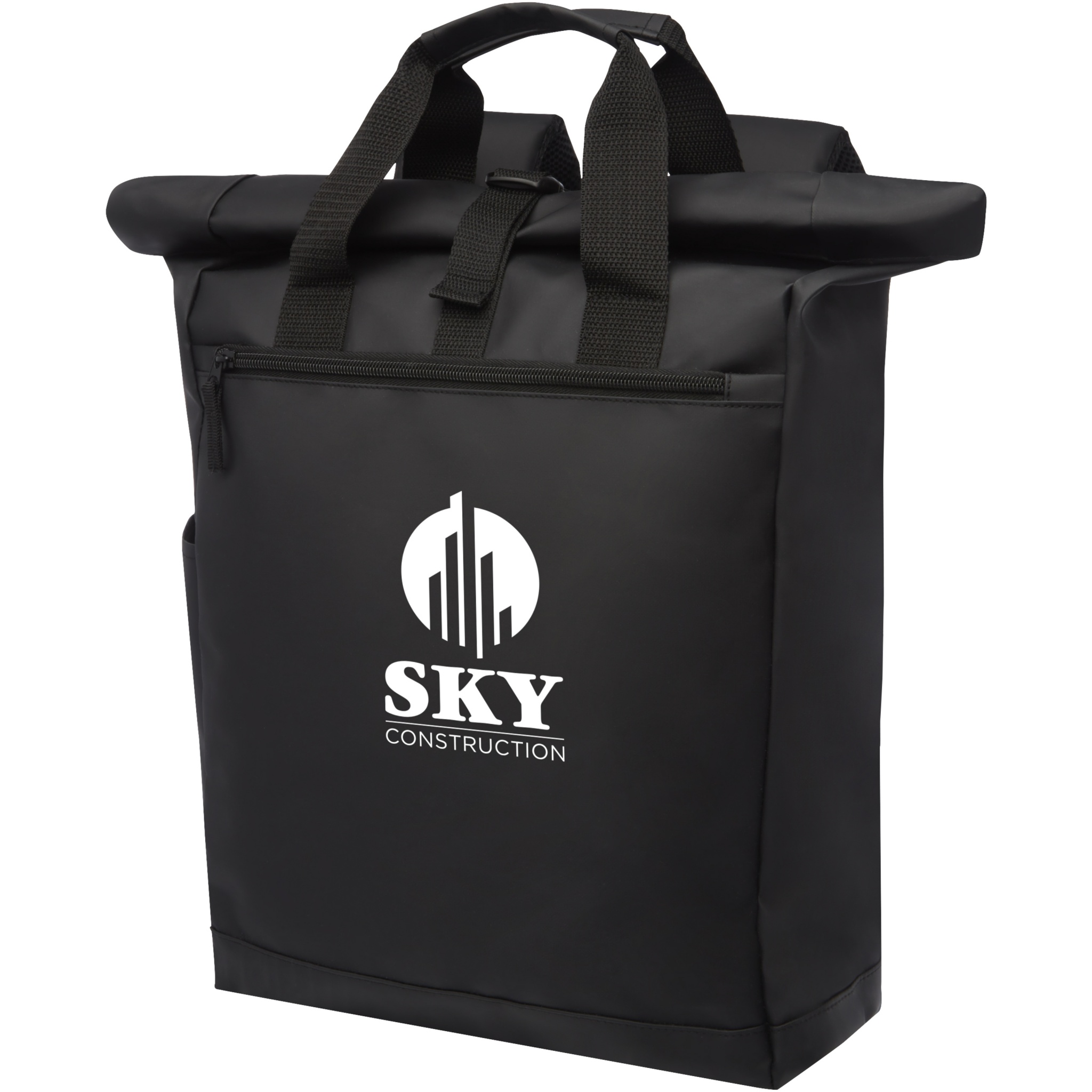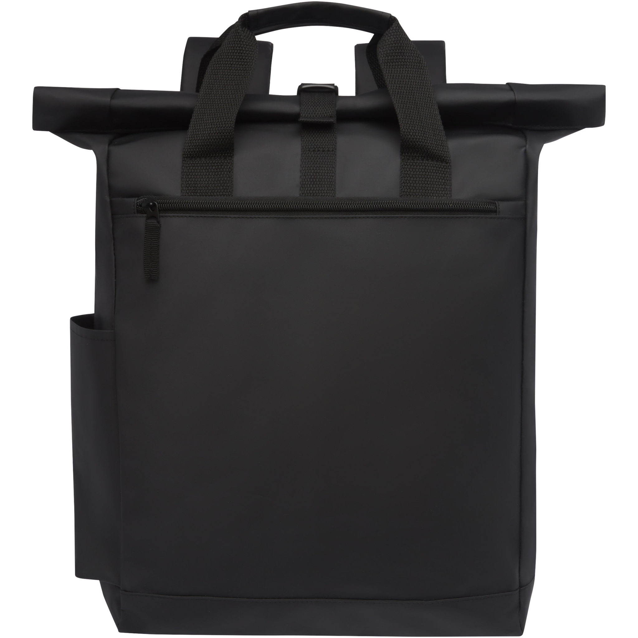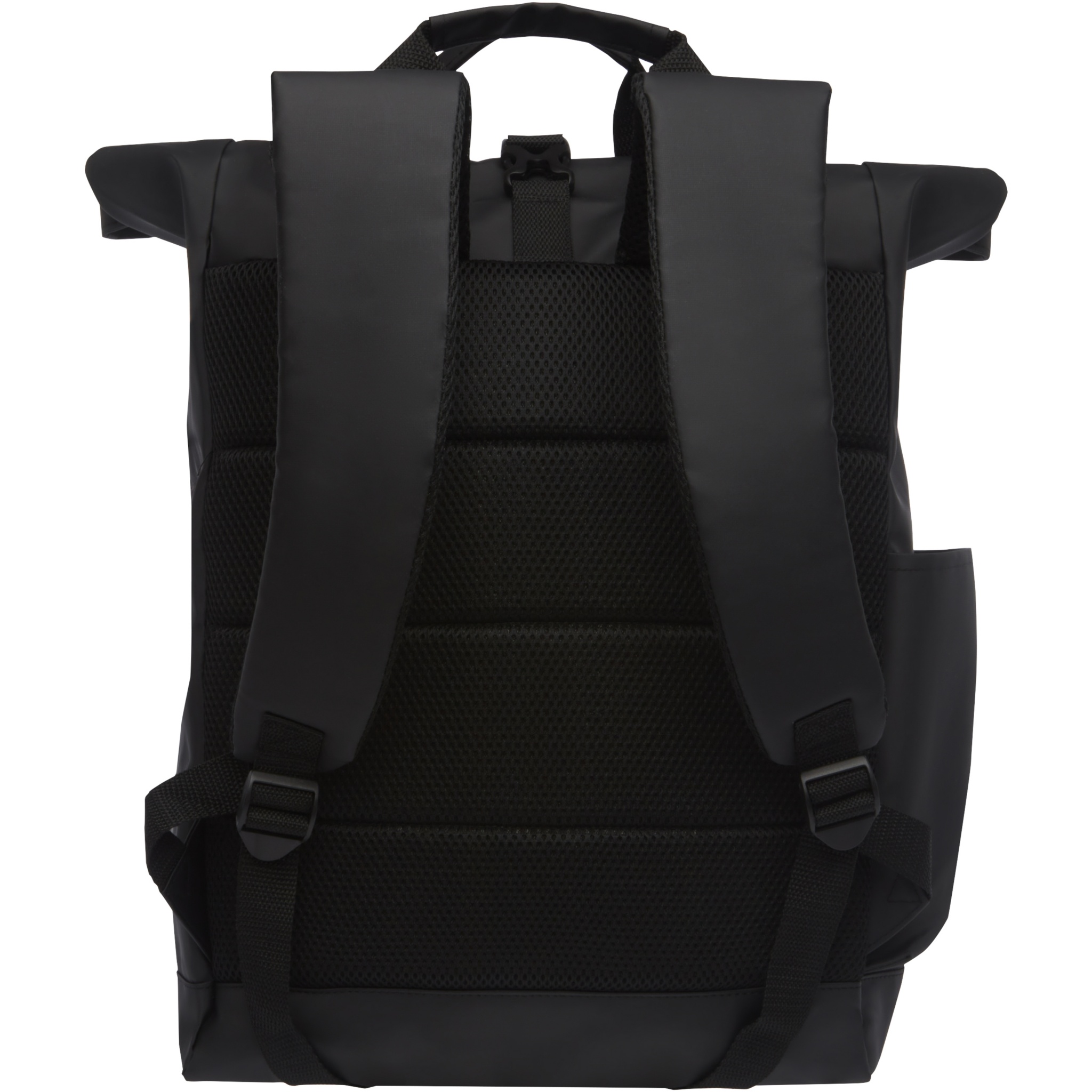 Vattenavvisande ryggsäck med vadderat fack för bärbara datorer, vadderade justerbara axelremmar, huvudfack med dragkedja och rullstängning och 2 bärhandtag.
