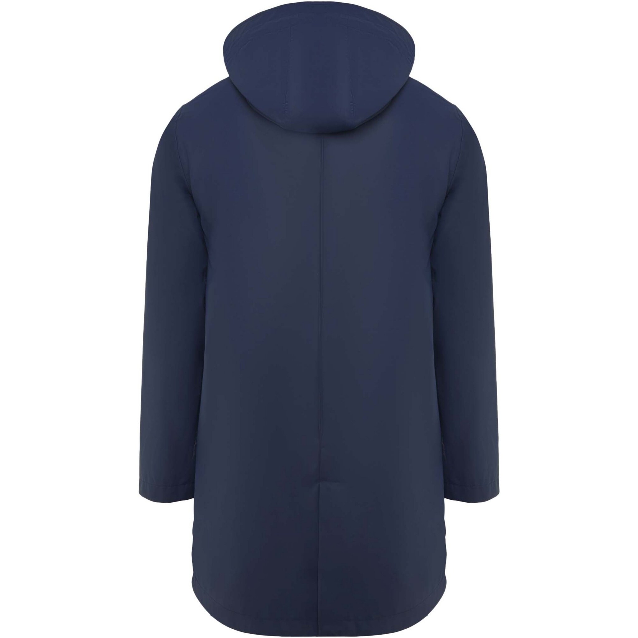 Vattentät regnjacka. Huva med topp. Värmeförseglade dragkedjor och sömmar. Kontrasterande detaljer i svart. Två sidfickor med dragkedja. Slits i bakre fållen. Borttagbar etikett. Vattentät. Modellen är 185 cm och bär storlek M.