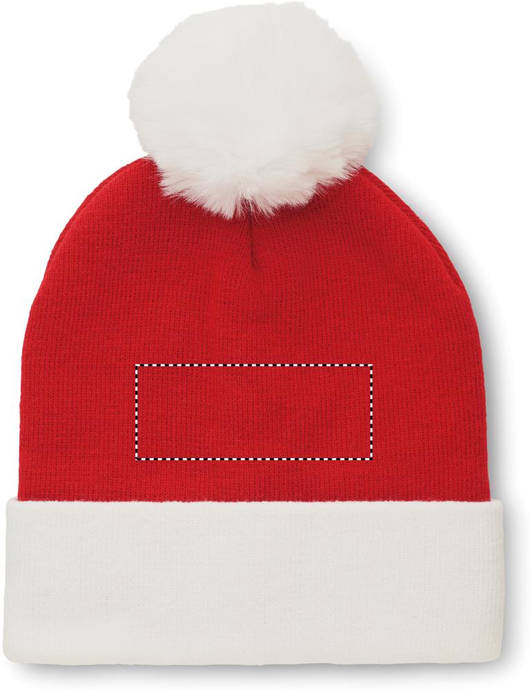 Stickad julmössa med uppvik/bord och tofs i PET-polyester.