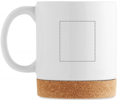 Keramik mugg med specialbeläggning för sublimeringstryck samt med korkbotten. Volym: 280 ml.