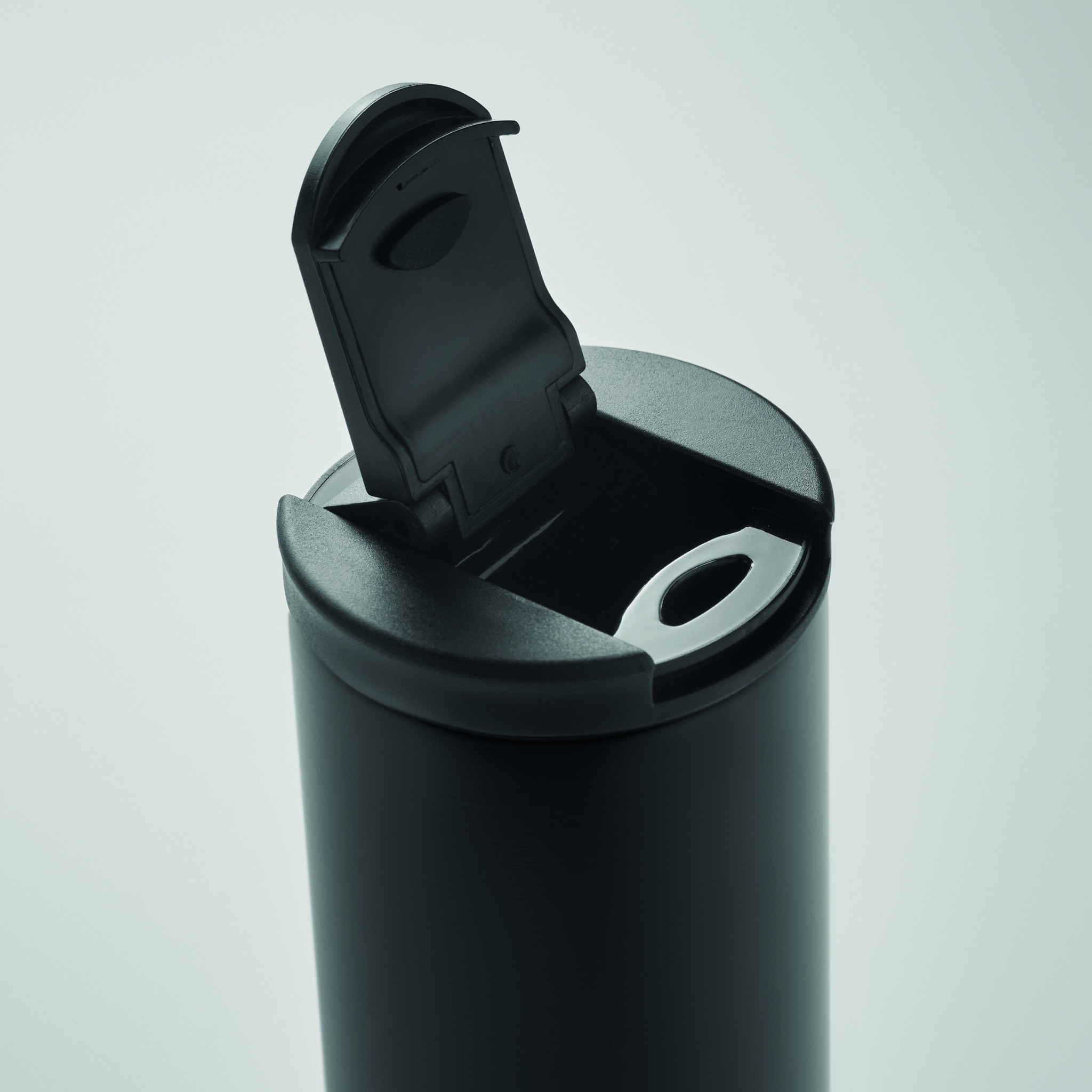 Dubbelväggig isolerande termosmugg i rostfritt stål. Kapacitet 330 ml. Läcksäker.
