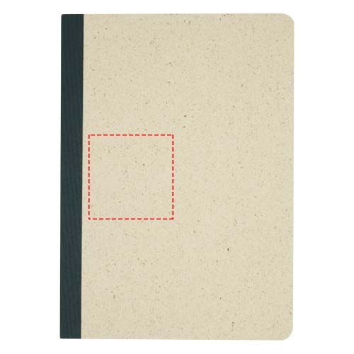 Presentförpackningen med skrivmaterial består av en flexibel anteckningsbok i A5-format med 64 ark, ett litet sytt häfte (10 x 15 cm) och ett anteckningsblock (8 x 11,5 cm). Alla 3 artiklar är tillverkade av 90 g/m2 gräspapper som innehåller upp till 40% gräsfibrer och har en låg miljöpåverkan. Mindre vatten och energi används i produktionsprocessen jämfört med vanligt papper och inga kemikalier används. Alla artiklar tillverkas i Europa och bidrar till ett lägre koldioxidutsläpp.