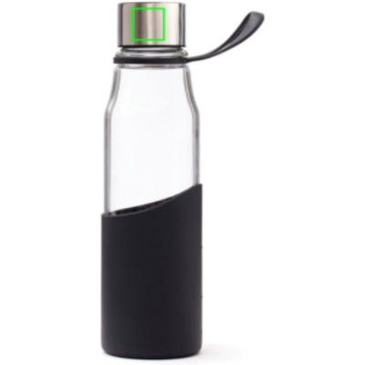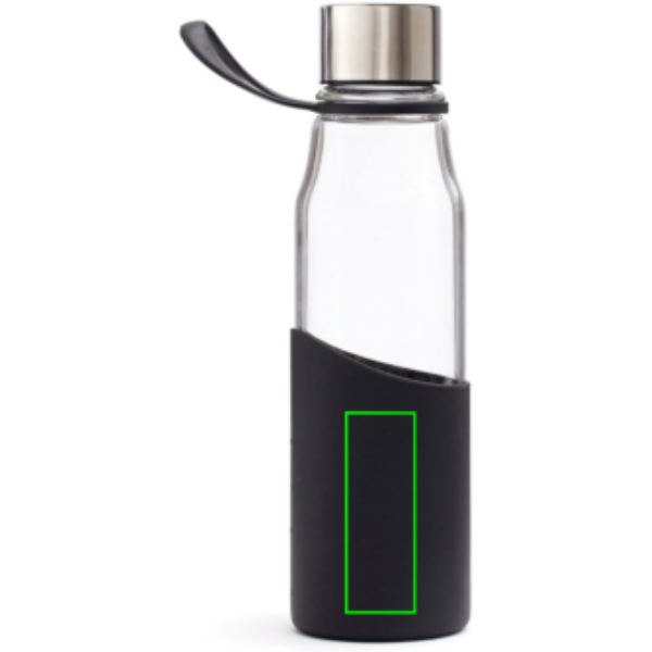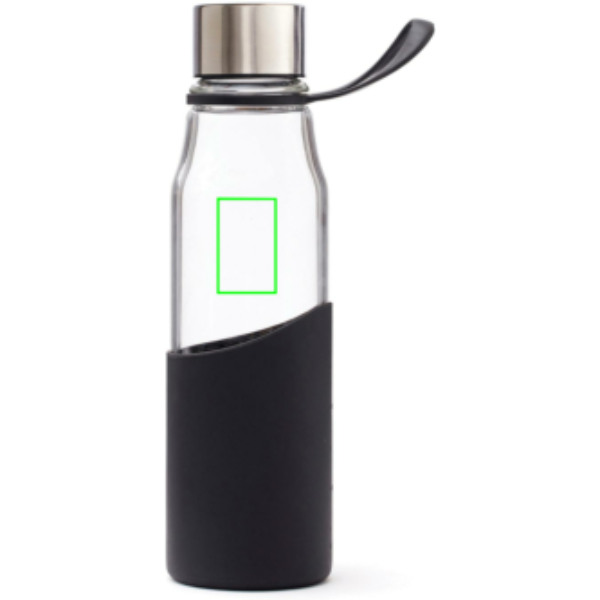 En snygg glasvattenflaska för träningen eller till att ha på kontoret. Denna vattenflaska är transparent i glas och silikon. Den har ett bra grepp som även gör den enkel att ta med när du är på språng. Flaskan tål maskindisk. Glasflaskan är tillverkad av Borosilikatglas. Borosilikatglasets egenskap är främst att de tål högre temperaturer samt snabba temperaturväxlingar och mer stöttåligt än vanligt glas.
